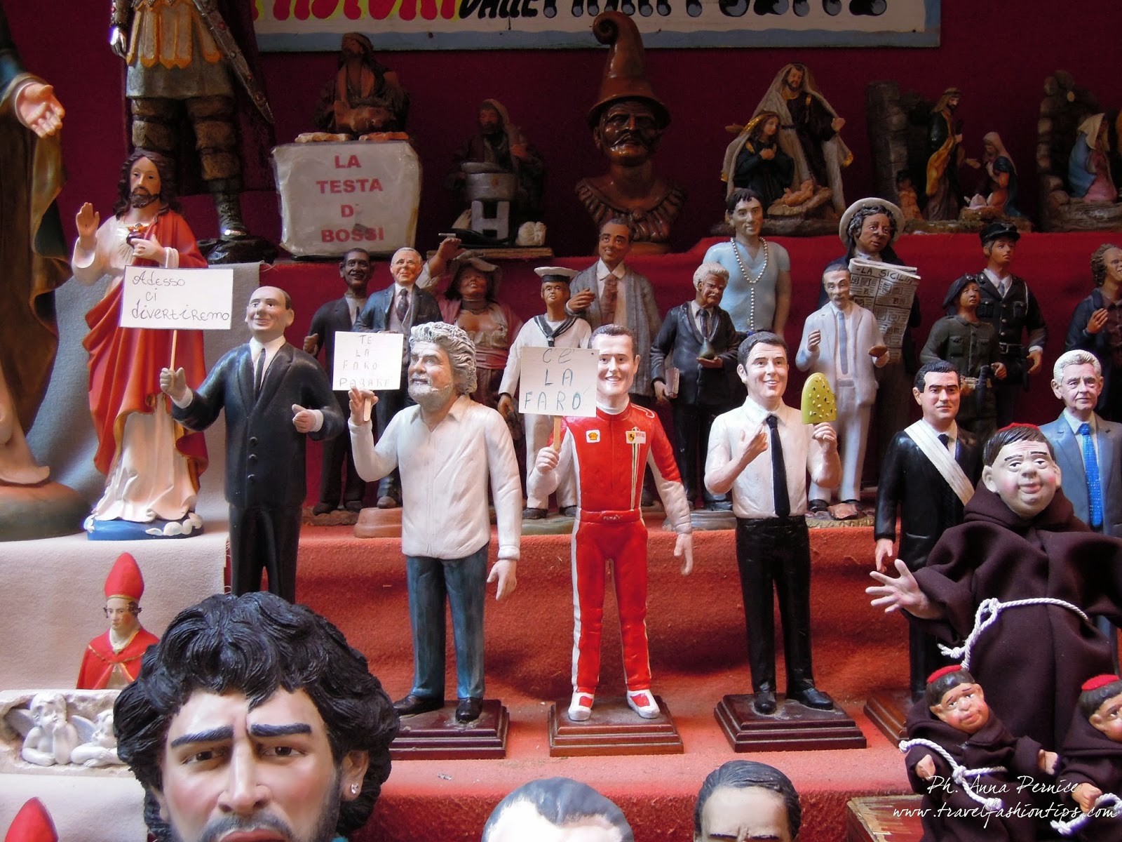 E’ possibile ammirare ed acquistare dei presepi che sono delle vere e proprie opere d’arte, pastori di tutte le dimensioni che riproducono i personaggi classici della natività e/o che satirizzano politici e personaggi dello star system.