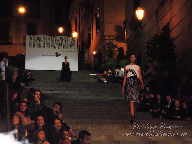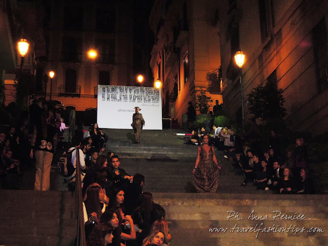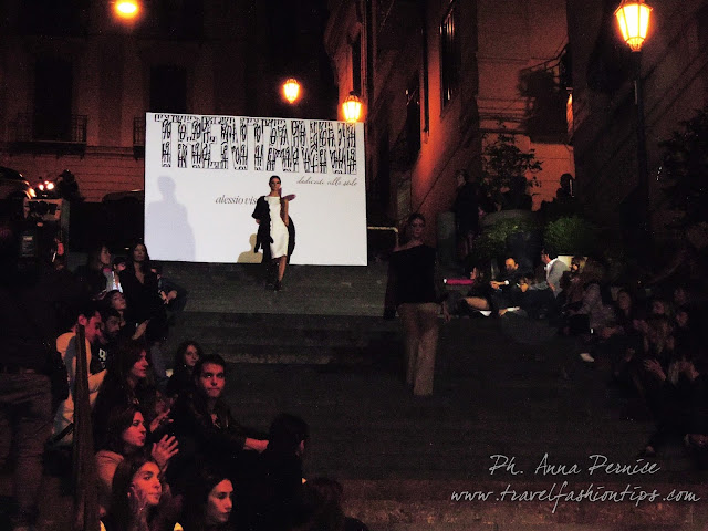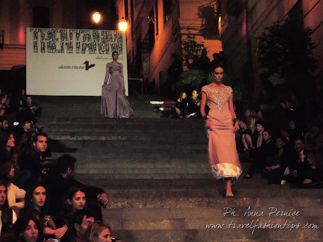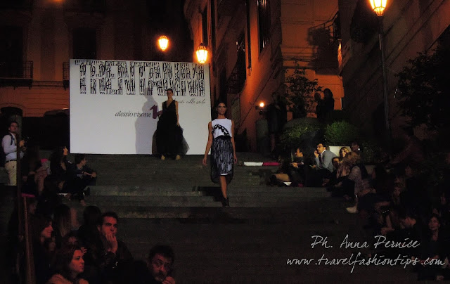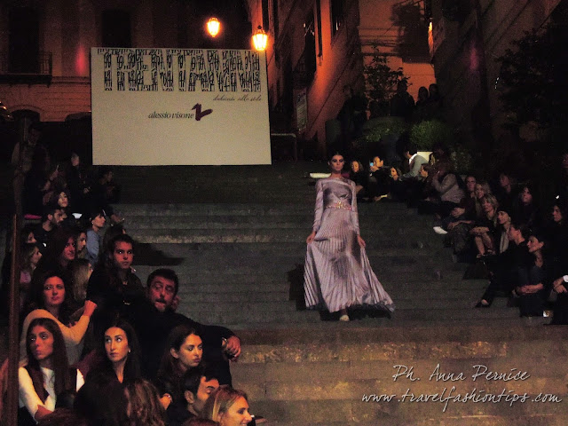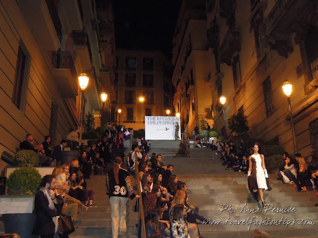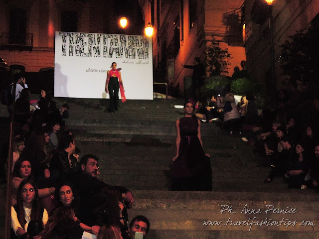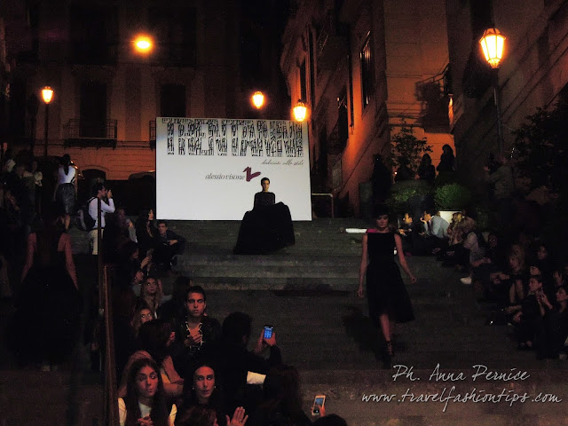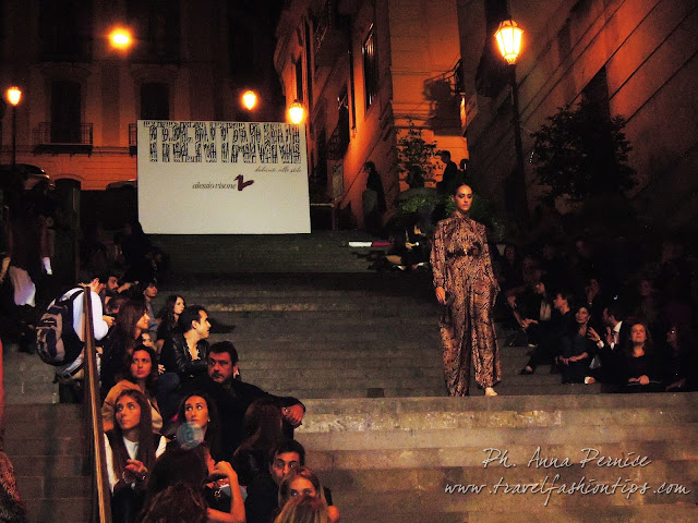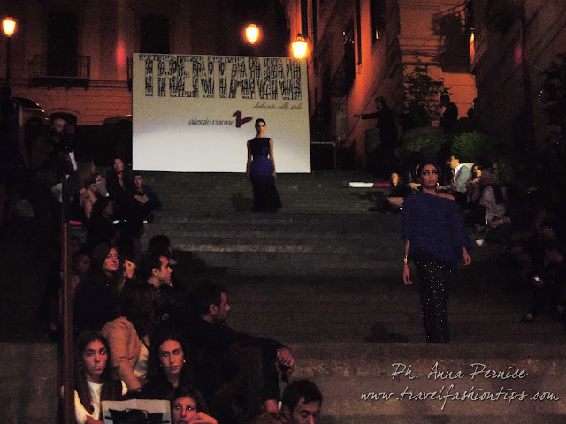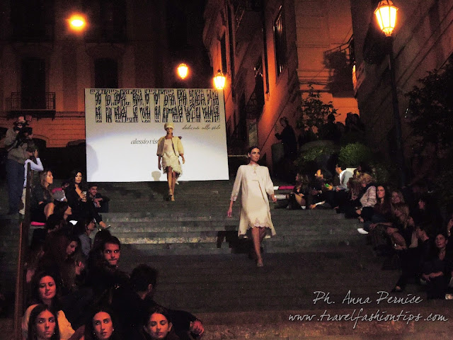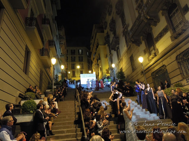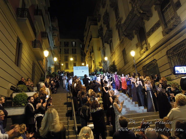 I gradini Francesco D’Andrea a Chiaja, che conducono a Via dei Mille, quartiere in di Napoli, proprio in mezzo tra i negozi di Hogan e Louis Vuitton, per una sera sono diventati palcoscenico di moda per il defilè dello stilista Alessio Visone, che quest’anno celebra i suoi 30 anni di attività!