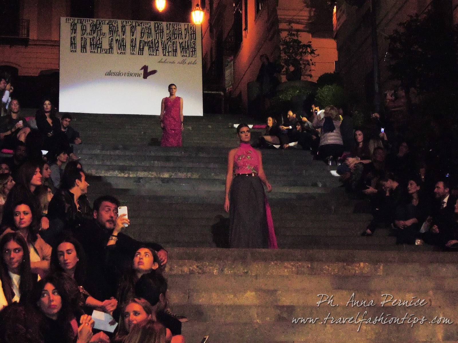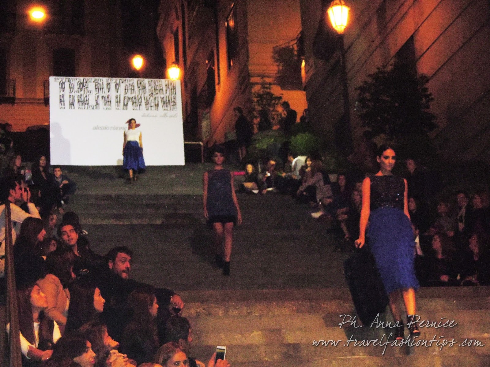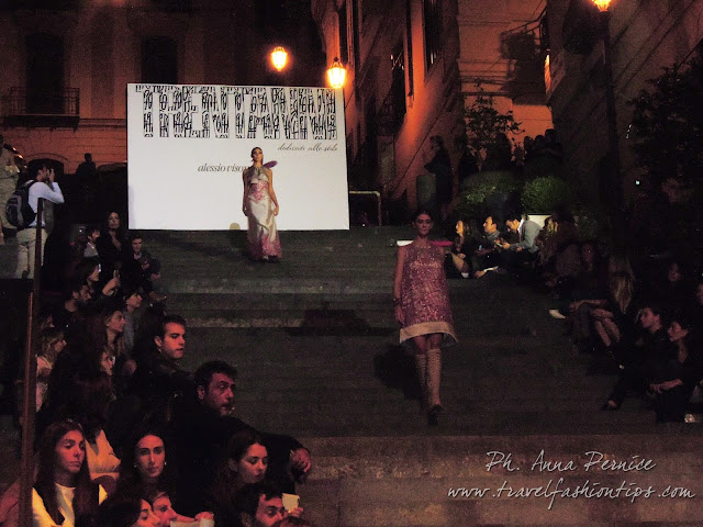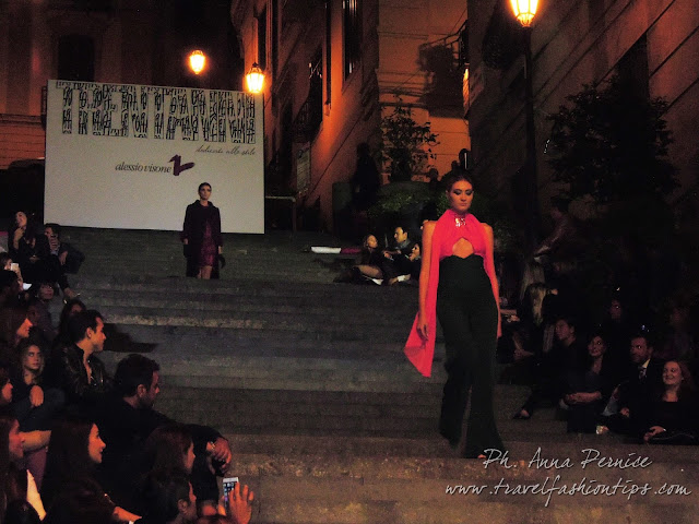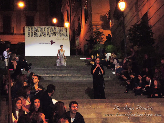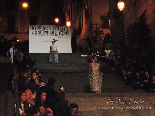 I gradini Francesco D’Andrea a Chiaja, che conducono a Via dei Mille, quartiere in di Napoli, proprio in mezzo tra i negozi di Hogan e Louis Vuitton, per una sera sono diventati palcoscenico di moda per il defilè dello stilista Alessio Visone, che quest’anno celebra i suoi 30 anni di attività!