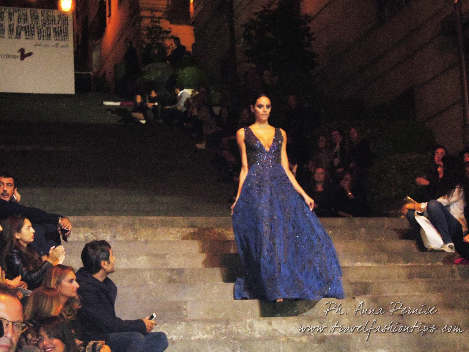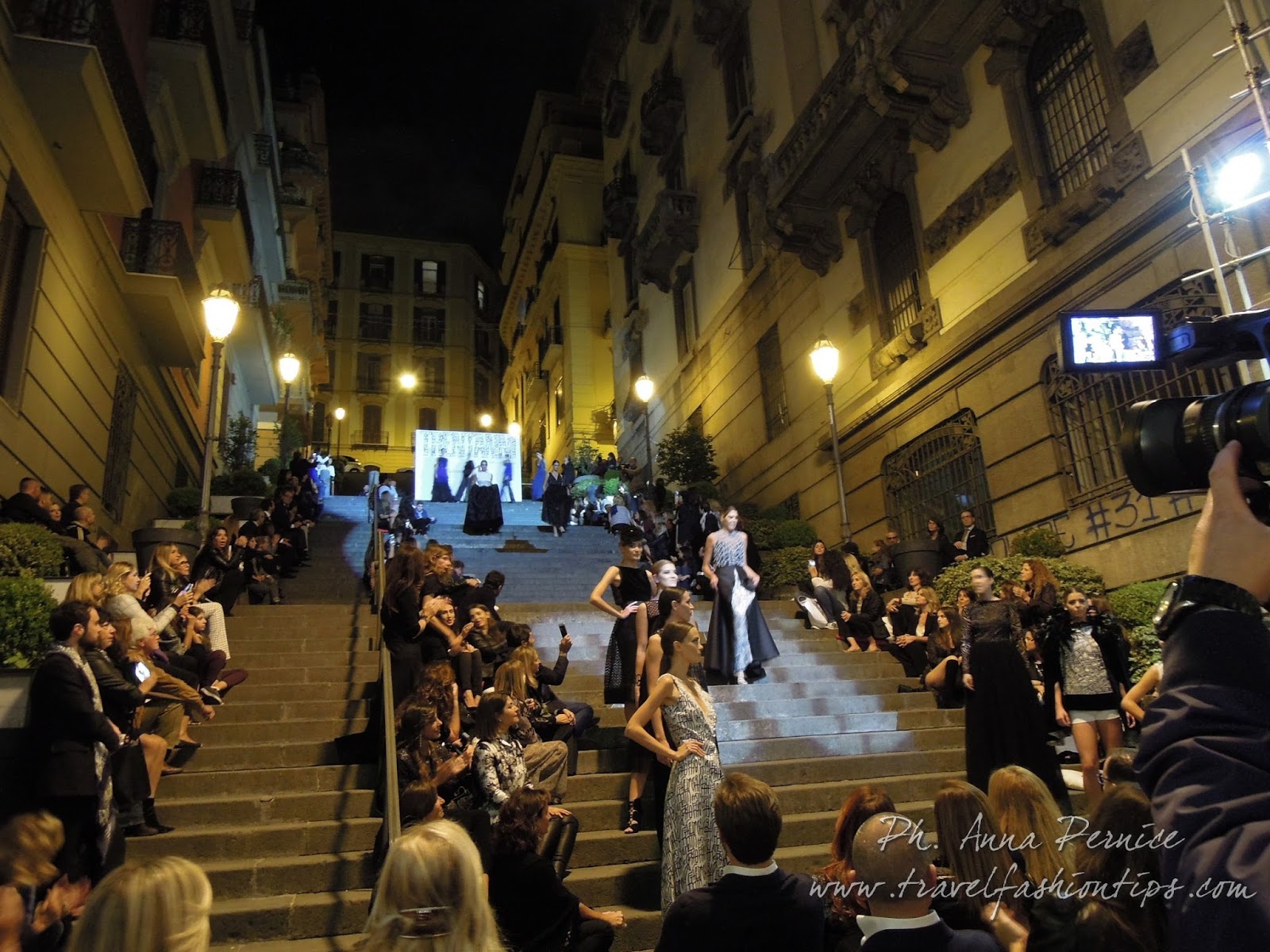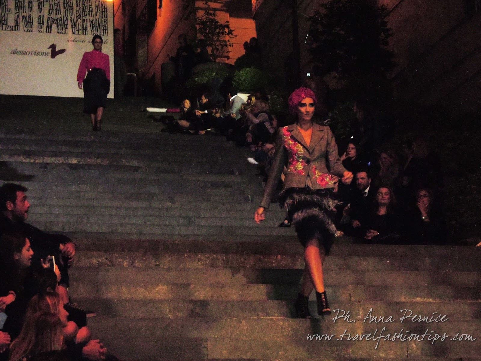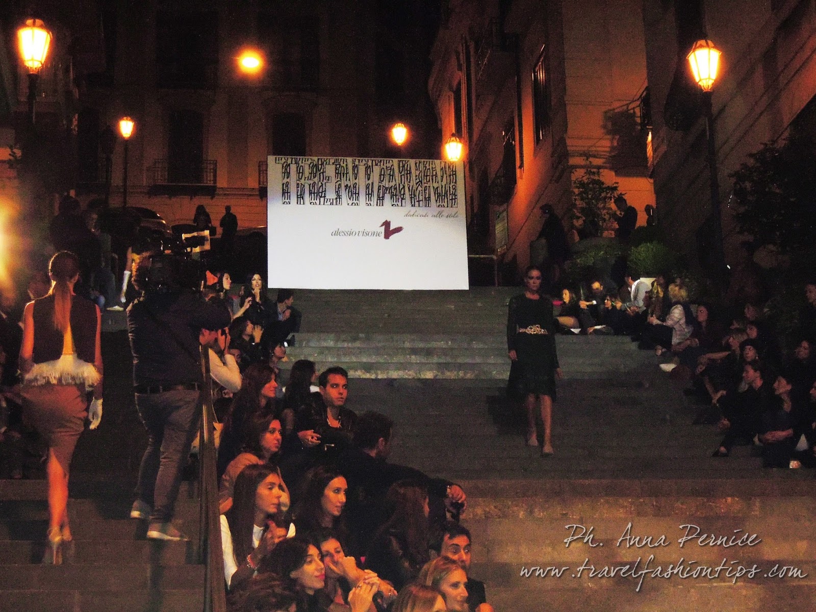 I gradini Francesco D’Andrea a Chiaja, che conducono a Via dei Mille, quartiere in di Napoli, proprio in mezzo tra i negozi di Hogan e Louis Vuitton, per una sera sono diventati palcoscenico di moda per il defilè dello stilista Alessio Visone, che quest’anno celebra i suoi 30 anni di attività!