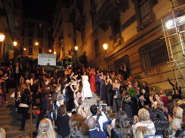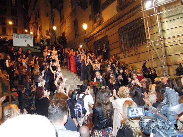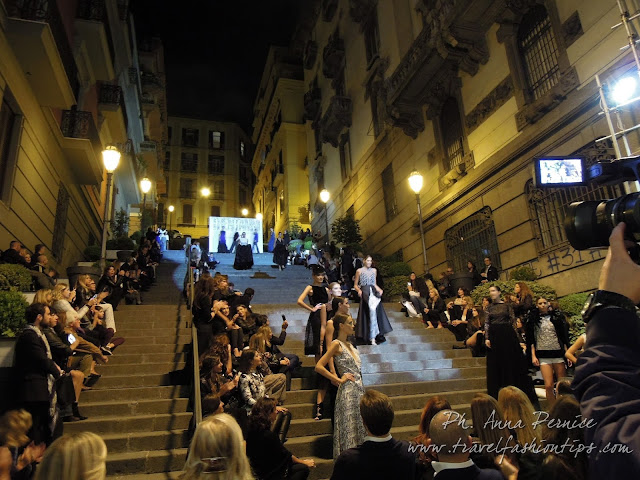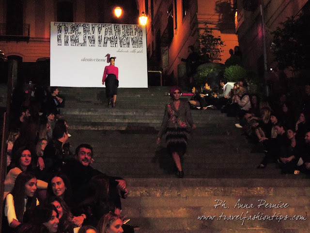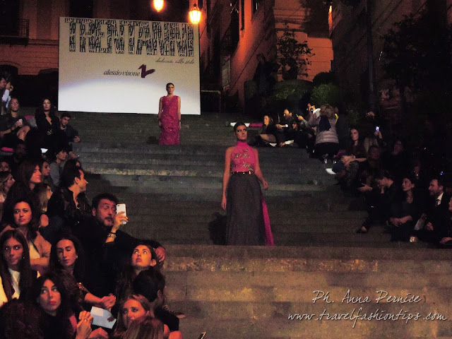 Ed è proprio dal backdrop in cima alla scalinata, simbolo di quest’amicizia in corso da trent’anni, che ha preso vita il defilè di Alessio Visone, con le modelle che man mano scendevano dalle scale partenopee portando in scena la bellezza di Napoli e delle creazioni made in Naples di Alessio Visone, senza aver nulla da invidiare alle sfilate di Piazza di Spagna!