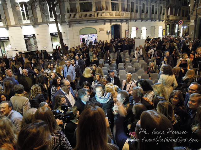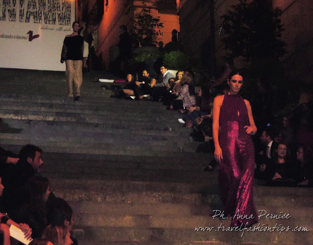 Le scalinate sono state adornate di cuscini bianchi e rossi, colori della Maison Visone e nella piazzetta adiacente sono state allestire sedute per accogliere circa 1000 invitati, tra giornalisti, fashion blogger, fotografi ed illustri imprenditori ed imprenditrici della Napoli bene.
