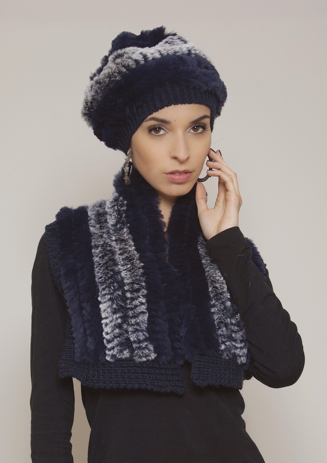 Di grande impatto anche la collezione accessori, dai simpatici bracciali in pratica versione… USB ai divertenti polsini da indossare sopra il maglioncino (di qualche stagione fa…), fino al girocollo in morbidissimo lapin tricot che “et voilà” diventa un cappello. O al girocollo in mongolia o volpe che si può all’occorrenza sfilare dal “pashmina” e infilare in qualsiasi altro foulard… Da non dimenticare infine i completi “Duo”: dalla borsa e sciarpa in lapin pon pon al cappello e sciarpetta in maglia e lapin, alla geniale mantella multisciarpa che diventa (insieme) poncho, gilet e coprispalle.