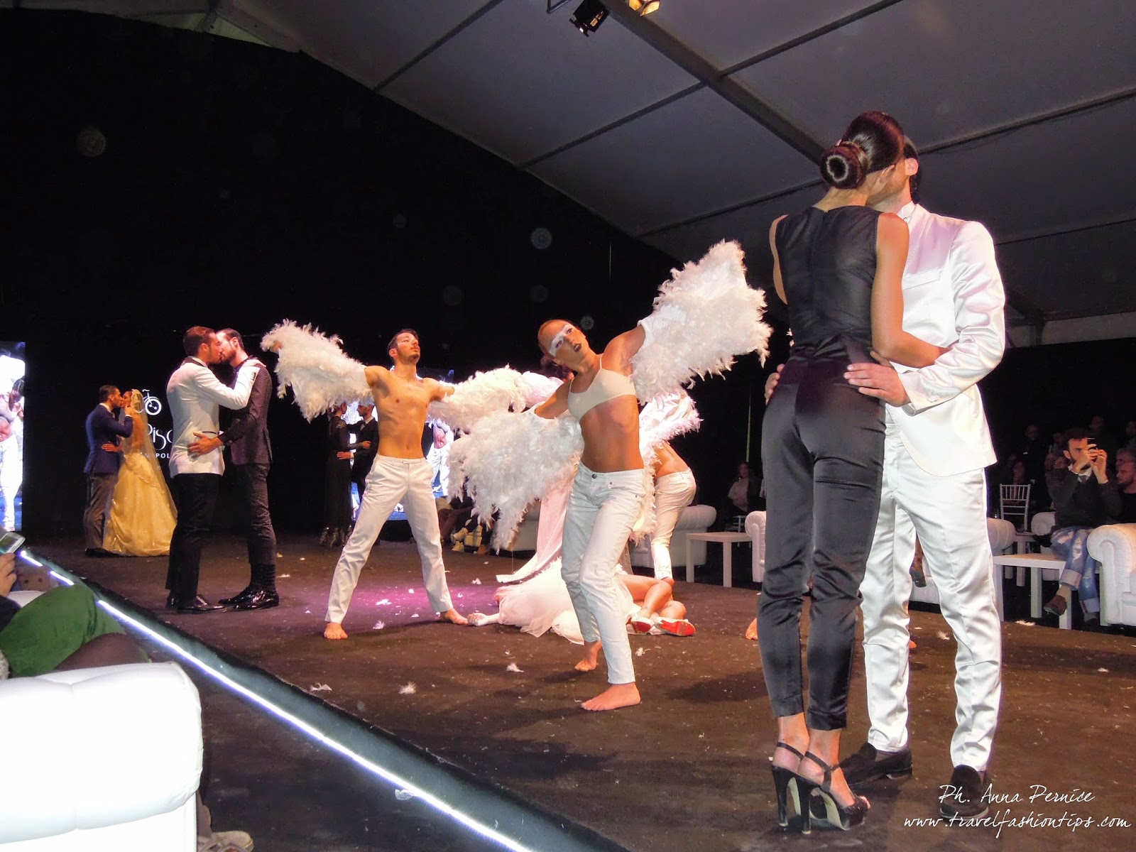 La serata inaugurale della kermesse, che ha visto il taglio del nastro da parte di Miriam, è partita con il fashion show della sartoria Mattia Pisano, che parte dal concetto di amore universale, toccando l’argomento tanto delicato in maniera interpretativa ed elegante, con uno spettacolo unico nel suo genere. In passerella non solo la moda sposi “tradizionali” ma anche quella dedicata agli omosessuali.