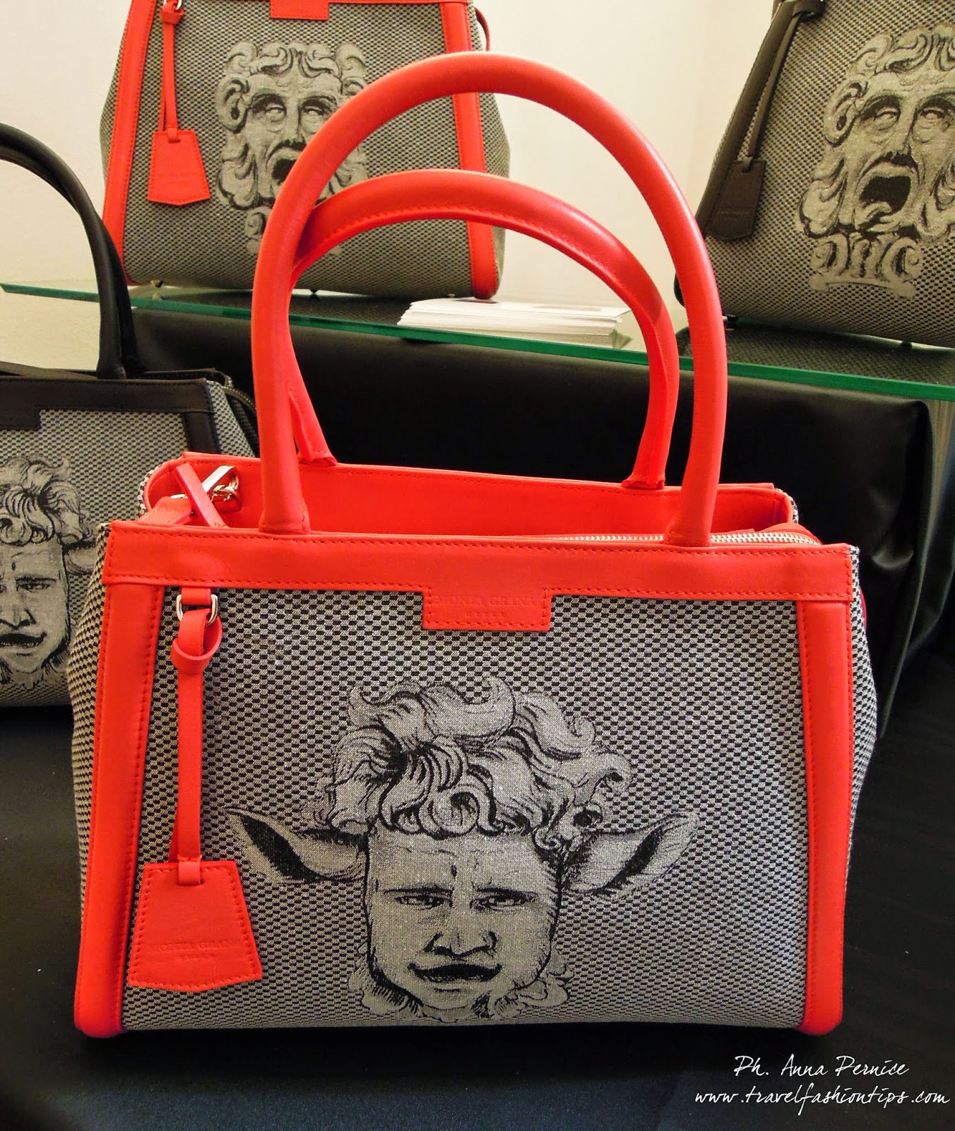E’ stato presentato un unico modello di borsa, in due stampe diverse (Luk e Taur) ed in due varianti colore (nero e rosso).