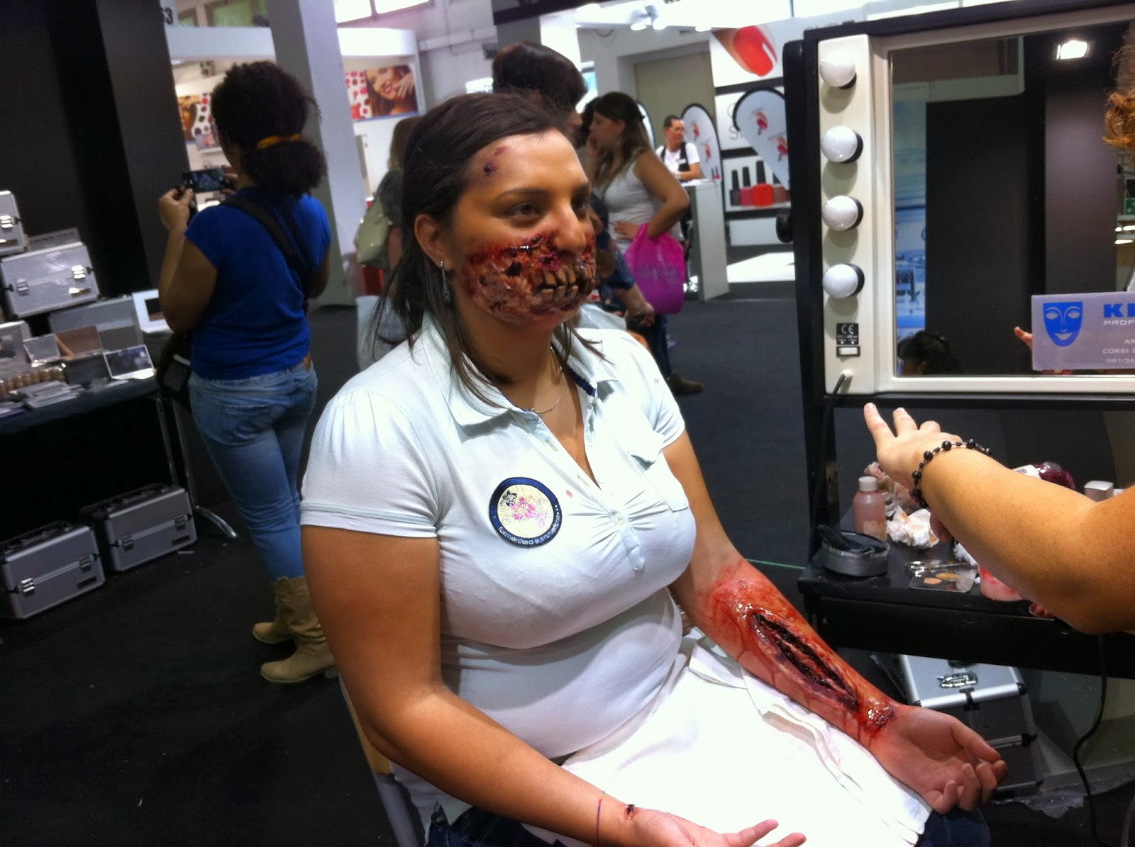 Con eccezione della parte iniziale dedicata ai massaggi ed ai prodotti di erboristeria, di un unico stand di make up cinematografico ed uno stand di vendita phon e piastre per i capelli, dove del resto mi sono fatta fare i boccoli, la gran parte degli stand vendeva ed esponeva solo ed esclusivamente prodotti per la decorazione delle unghie.