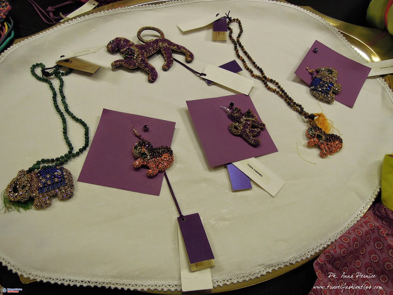 L’altro brand presente nel Trunk Show, Opaline, invece, è di Milano ed era qui a Napoli esclusivamente per l’evento. Brand Milanese con origini Indiane, produce dei bellissimi pigiami tre pezzi realizzati con cotone indiano, anch’esso di qualità. I loro pigiami, tutti coloratissimi e con fantasie diverse per i pezzi di sopra e sotto, per dare un contrasto ed una personalizzazione in più rispetto al solito pigiama da casa, possono essere facilmente riadattati per diverse occasioni. le loro stoffe sono dipinte da degli abili artigiani di Mumbai che utilizzano le antiche tecniche indiane di colorazione delle stoffe. La novità di Opaline è che trasforma il giorno nella notte per degli accessori e tuniche che possono essere indossate anche sui jeans o al mare sui costumi. Hanno realizzato anche una linea di gioielli in pietre e cristalli swarowsky. Io ho scattato qualche foto a quelli che mi hanno colpito di più. Non sono bellissimi?