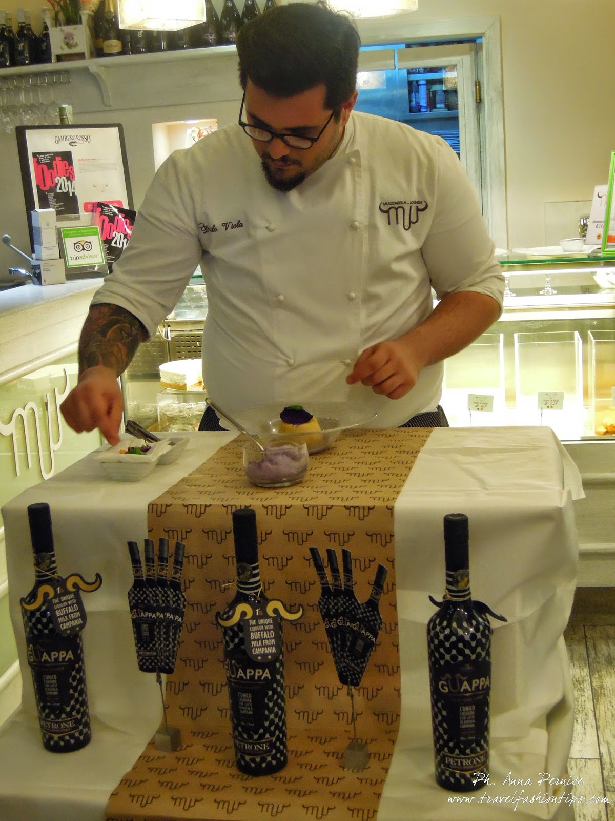Giovedi scorso ho preso parte al “Guappa Tour”, il giro tra i luoghi di eccellenza della Campania organizzato dalla giornalista enogastronomica Laura Gambacorta, dell’unico liquore a base di latte di bufala realizzato dall’Antica Distilleria Petrone, che questa volta ha fatto tappa da Muu Muzzarella Lounge a Chiaia, l’innovativo locale napoletano dei giovani e brillanti Salvatore Maresca e Vincenzo Guarino.