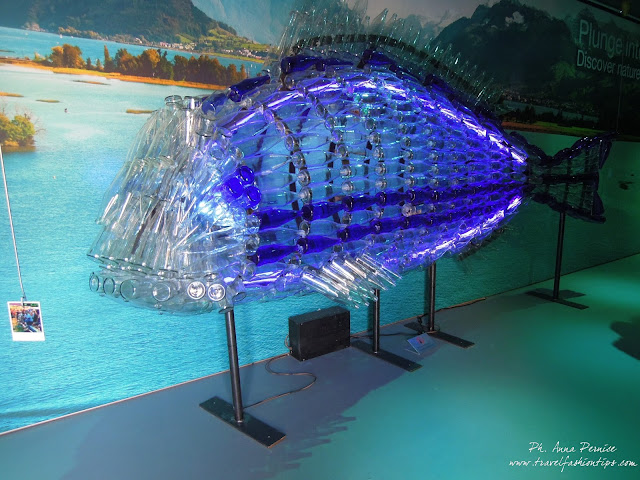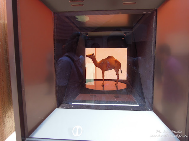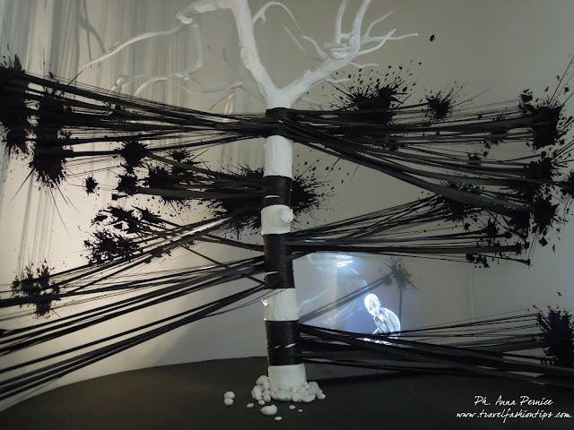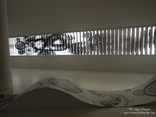Al secondo piano, una proiezione su uno schermo trasparente visualizza dei video attivati da rilevatori di presenza.