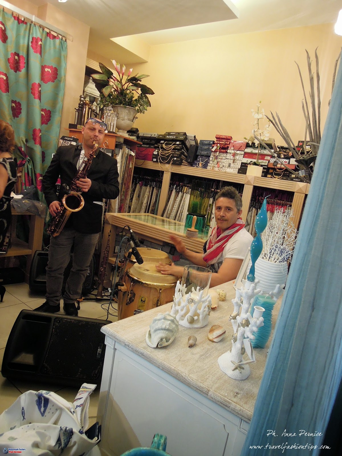Ad accompagnare la serata, il suono del sax del bravissimo Rocco Di Maiolo accompagnato alle percussioni dall’altrettanto talentuoso Orazio Moccia.
