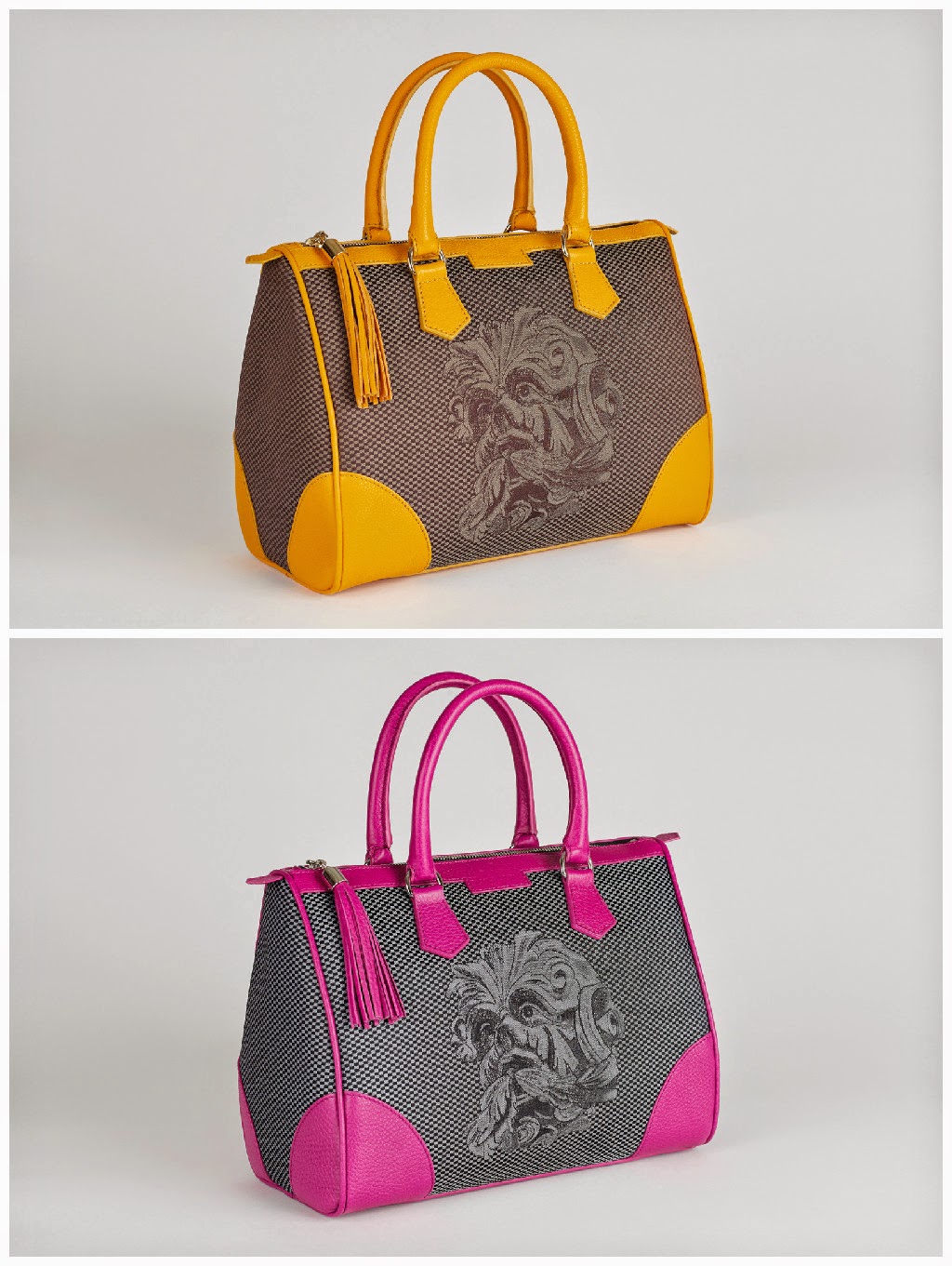 Per la primavera estate 215, Monya Grana propone 3 modelli diversi di borse, tutti caratterizzati dall’intramatura dei mascheroni barocchi