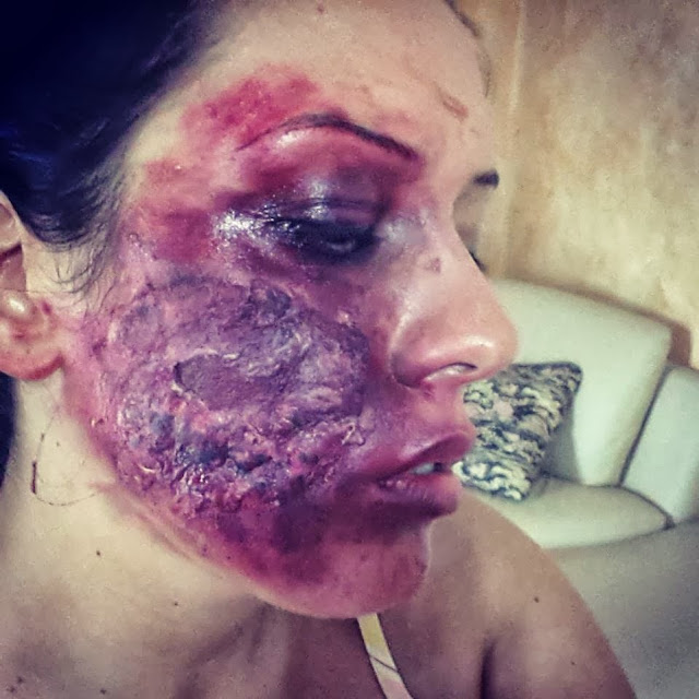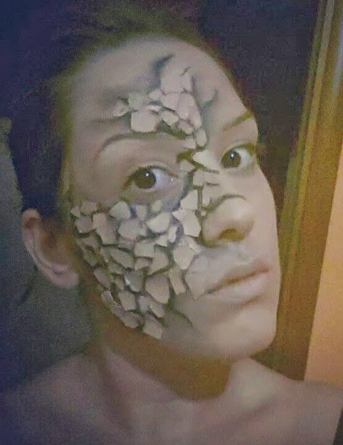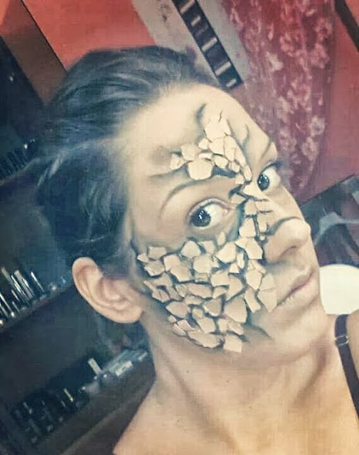 Non trovate siano bellissimi? Claudia è davvero bravissima nelle sue decorazioni! le ho chiesto di spiegarci qualche “trucco” del mestiere e le mi ha detto che per realizzare trucchi “cinematografici” e “teatrali” (come quelli appena mostrati), bisogna innanzitutto avere una spiccata fantasia oltre che una buona preparazione, che è l’elemento principale. Claudia, ad sempio, utilizza, oltre ai prodotti che si trovano in commercio nei negozi specializzati,anche prodotti naturali,come ad esempio il guscio d’uovo, la farina o addirittura in alcuni casi il galbabino ! E’ poi molto importante che i prodotti siano di buona qualità altrimenti non si ottiene un buon risultato e soprattutto non bisogna dimenticare che stanno a contatto con la pelle.