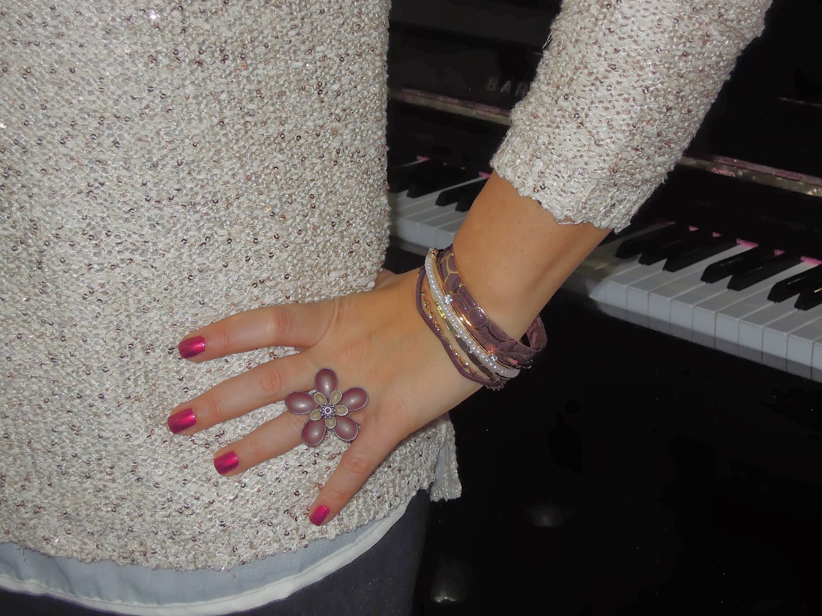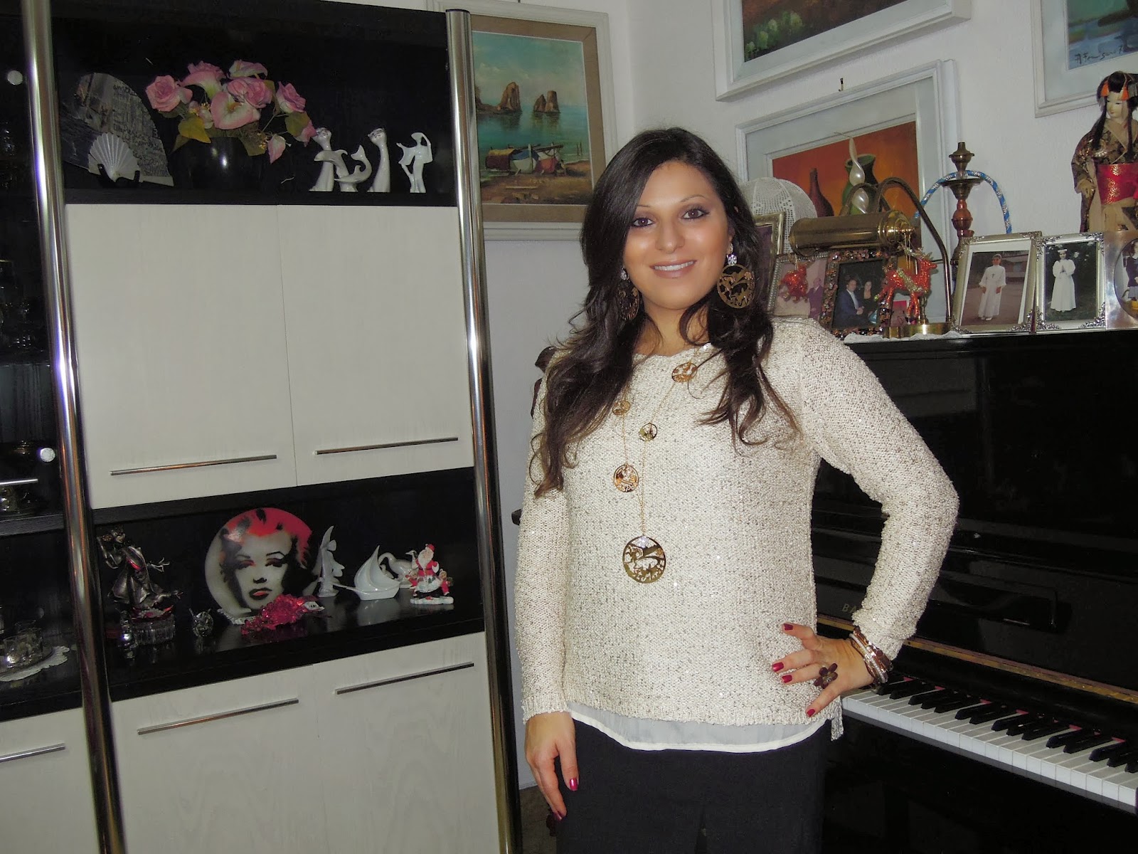 Voglio però mostrarvi l’outfit che ho indossato per la cena di capodanno in famiglia: tshirt con pailettes, gonna a tubino, calze a pois e bijoux Misis.
