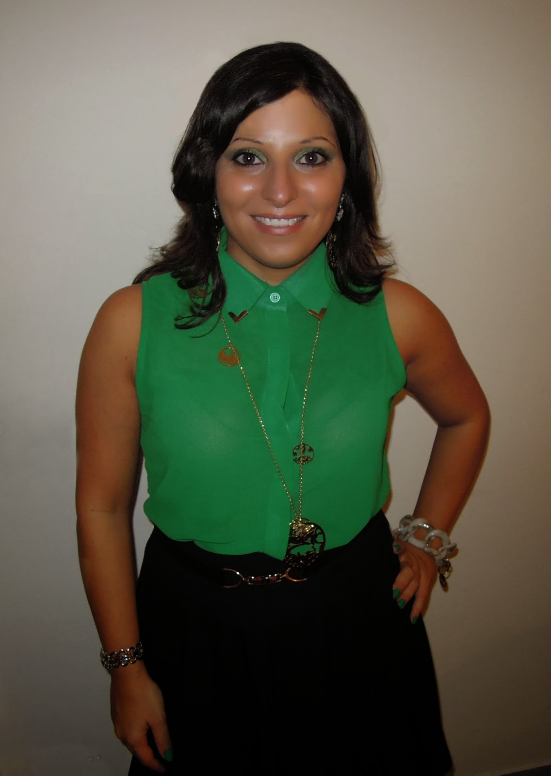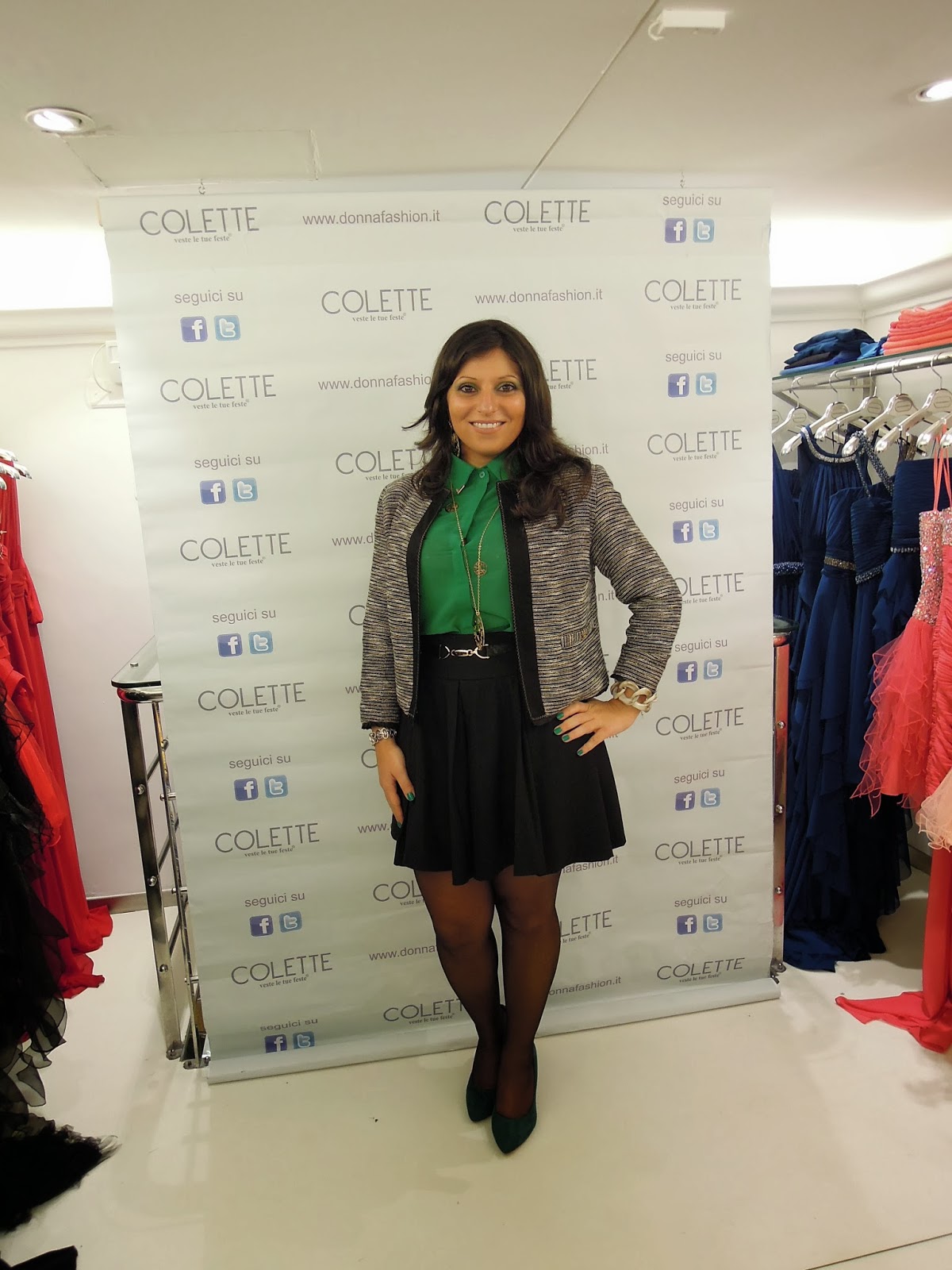 Per la fashionissima serata organizzata da Rossella Padolino di The Fashion Twice, presso il suo negozio Colette di Via Chiaia, ho indossato una camicetta verde di chiffon acquistata su Romwe, che vi avevo già fatto vedere qui, una gonna francese con inserti in pelle, borsa verde no brand, decolletes in camoscio verde no brand, collana ed orecchini di argento placcato in oro 18kt con inserti in swarowsky inviatimi dall’azienda Misis e bracciale in osso Fabira che vi avevo mostrato tra i regali del mio compleanno. Per coprirmi, dato che di sera inizia a fare freschetto, ho indossato una giacca modello Chanel acquistata da Giorgia & Johns, quando lavoravo ancora per loro.