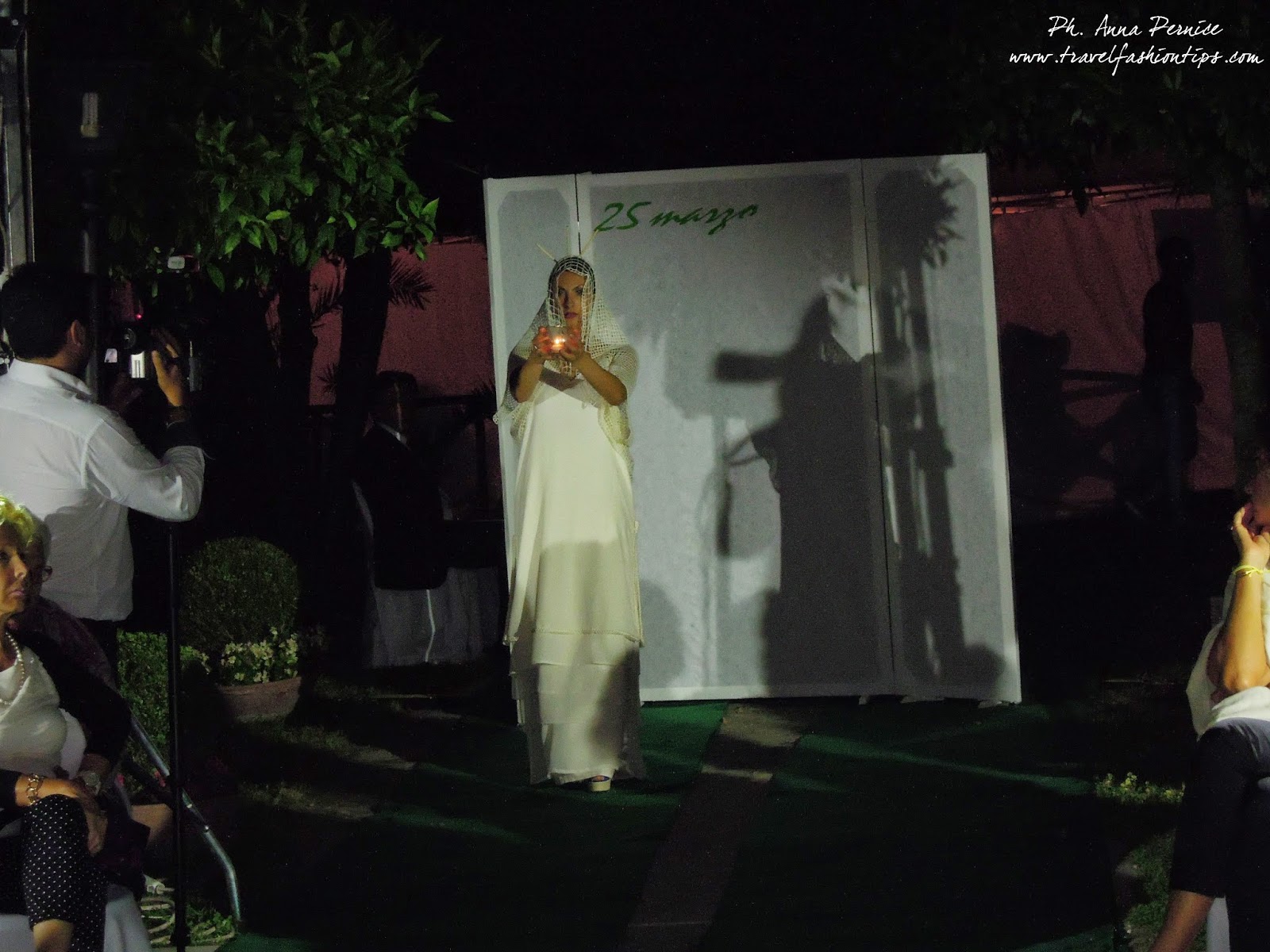 Accanto a Manfredi, l’eccellente, giovanissimo team, di “25 Marzo”, Lucio Isoldo, responsabile della comunicazione e delle public relation del Brand e Fiammetta Riano, coordinatrice dello style office. Particolarmente apprezzata la “sposa”, proposta in chiave insolita, lontano dalla stereotipa immagine di “Felicità”, bensì avvolta da un velo di tristezza apparsa sulle note di Hendel “Lascia che io pianga” , liberata poi in scena dallo stesso Manfredi, che “trasformando” l’abito, in un modello da sera corredato da una morbida stola bianca e azzurra, l’ha poi coinvolta nel suadente viaggio verso la libertà. Lo stesso abito da sposa che ha chiuso la sfilata, una delle prime creazioni di Carlo Manfredi, ha sfilato nel lontano 1974, indossato dalla bellissima Serena Albano. A seguire, un raffinato light dinner.