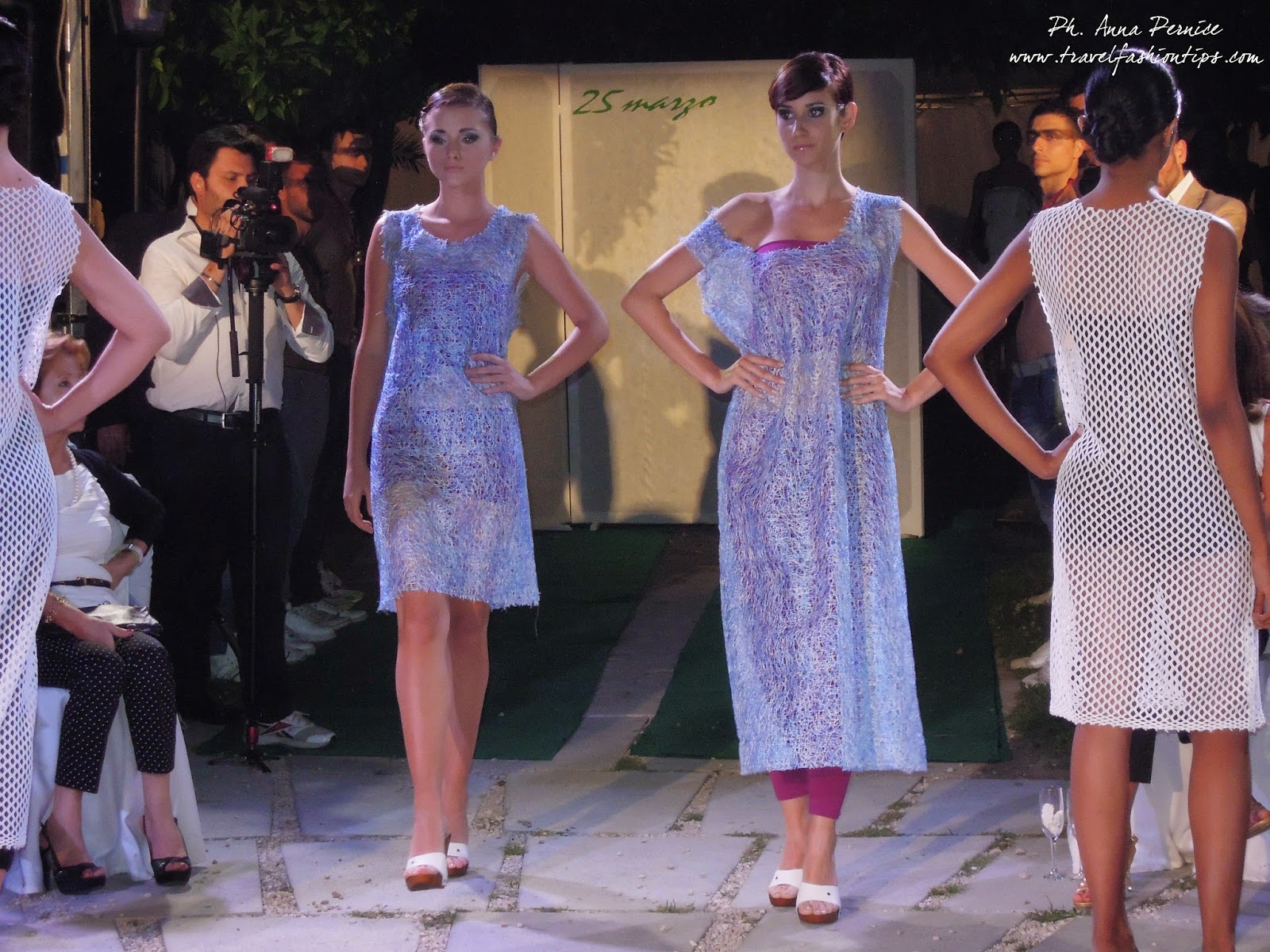 Sulla scena, dunque,non il tradizionale defilè ma una originale “fashion performance” scandita nei suoi suggestivi passaggi dalla live music by la sassofonista Valeria Fariello, e dal dj. Stefano Bottolla in arte Stefano B, che ha visto esibirsi più volte al fianco di aitanti modelli abbigliati con originalissimi accessori, modelle professioniste e “per caso” lo stesso Manfredi, in una insolita veste di “regista” di seducenti “Mutazioni”. “25 Marzo”, come ha riferito Manfredi, “rappresenta un progetto nato da un forte desiderio di ricerca da delinearsi su criteri di studio e creazione ed in più dal bisogno di tracciare linee, schizzare immagini, disegnare forme, selezionare i colori, inventare accessori ed eventi conformi all’idea stessa. Ed ecco che, gli interpreti principali di questa sorta di “cambiamento” quali il cretonne, la seta, taffetà, tricot, organza, broccato, velluto, piquè, operano con “25 Marzo” alla scoperta delle giunture necessarie, nei piccoli accorgimenti e nelle infinite strategie per poterli tenere insieme, inforcando ogni giorno con fantasia un paio di forbici, divertendosi a tracciare linee di gesso e di cotone, rendendo tangibile l’immaginazione che si concretizza in giochi di luce e di colori che il linguaggio abituale della moda definisce “Abiti””