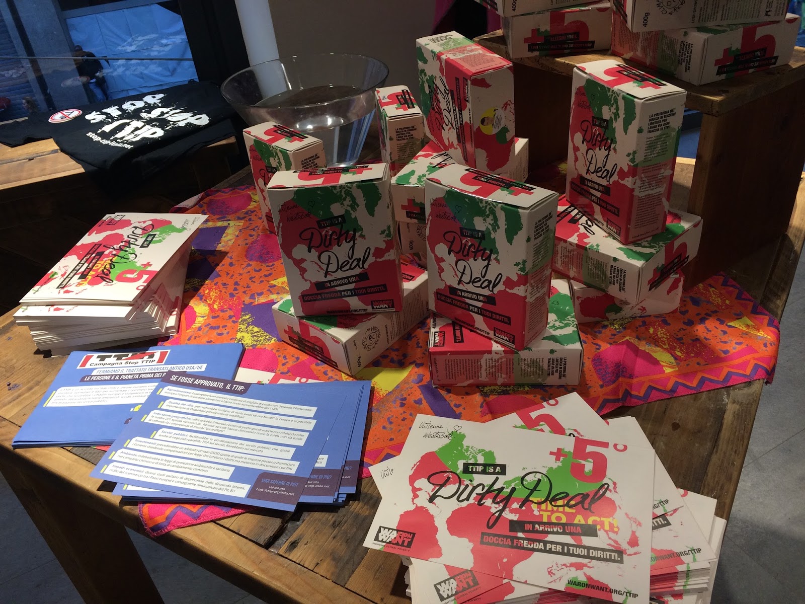 Dal 18 settembre al 1 ottobre i negozi Lush di 14 paesi d’Europa uniranno le loro forze a quelle di War On Want, un’associazione che lotta in difesa della giustizia e dei diritti umani, e al movimento Climate Revolution di Vivienne Westwood per dire no al TTIP, Partenariato Transatlantico per il commercio e gli investimenti, ossia un accordo commerciale di libero scambio in corso di negoziazione tra gli Stati Uniti e l’Europa, il cui obiettivo è quello