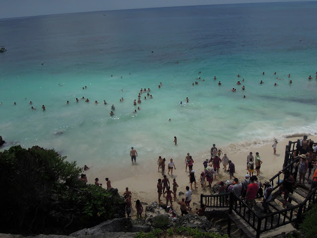 A Tulum siamo andati da soli con un taxi collettivo. In Messico invece degli autobus, passano questi taxi collettivi che sono molto simili ai pulmini ed hanno anche il tariffario per tratte già stabilito ed esposto in bella vista. E’ stato un modo per conoscere anche i loro paesini, poverissimi, perchè anche la gente locale usufruiva di questi taxi. Pensate che molti villaggi sono costituiti da case di legno e paglia, delle vere e proprie capanne! E che un lavoratore messicano guadagno solo $ 6,00 al giorno. Da non credere vero?