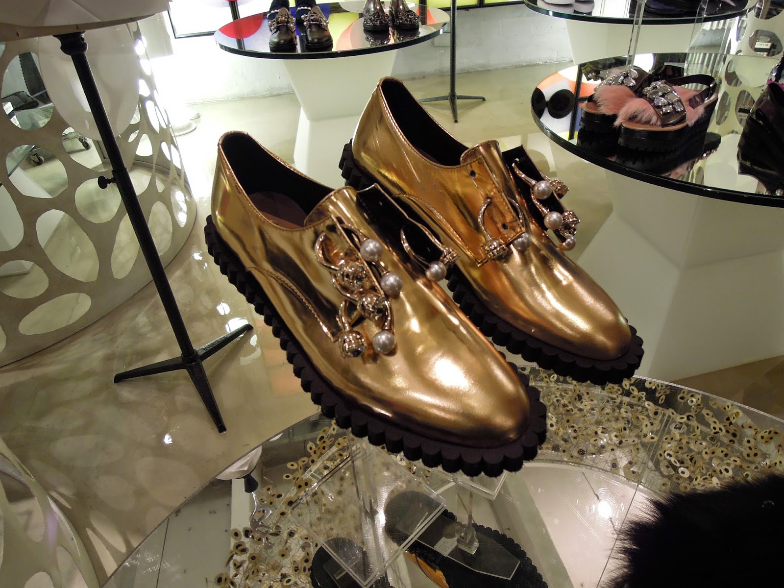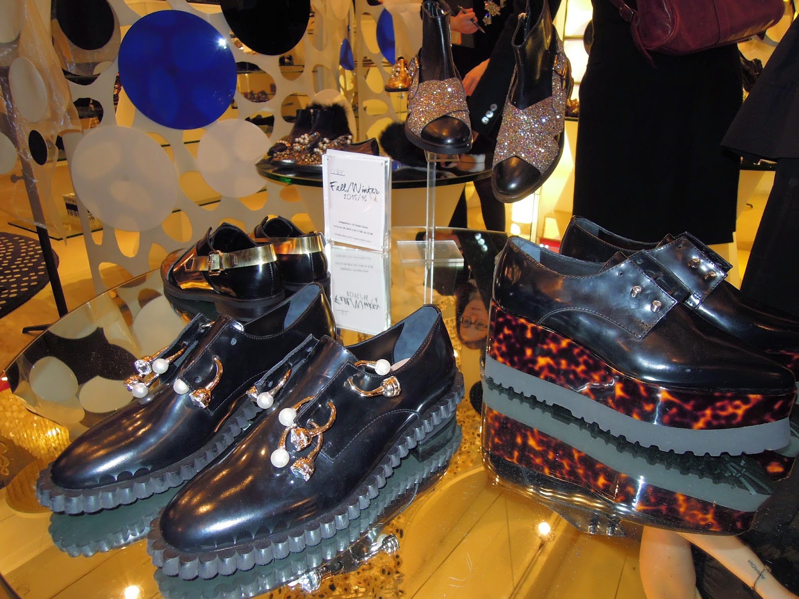 La derby, invece, scarpa maschile per definizione, viene riproposta in forma unisex, ripulita da tutte le lavorazioni ornamentali e hackerata da accessori metallici che ne determinano la status di stringata gioiello. Le varianti proposte sono con graffette in oro applicate sulla punta, applicazioni di perle o linguette metalliche in oro, pietre multiformi incastonate sulla punta, giro tacchi in metallo con maxi pietre effetto christal incastonate, maxi fiocchi di pelle annodati sulla punta, perle di vari formati che avvolgono la tomaia.
