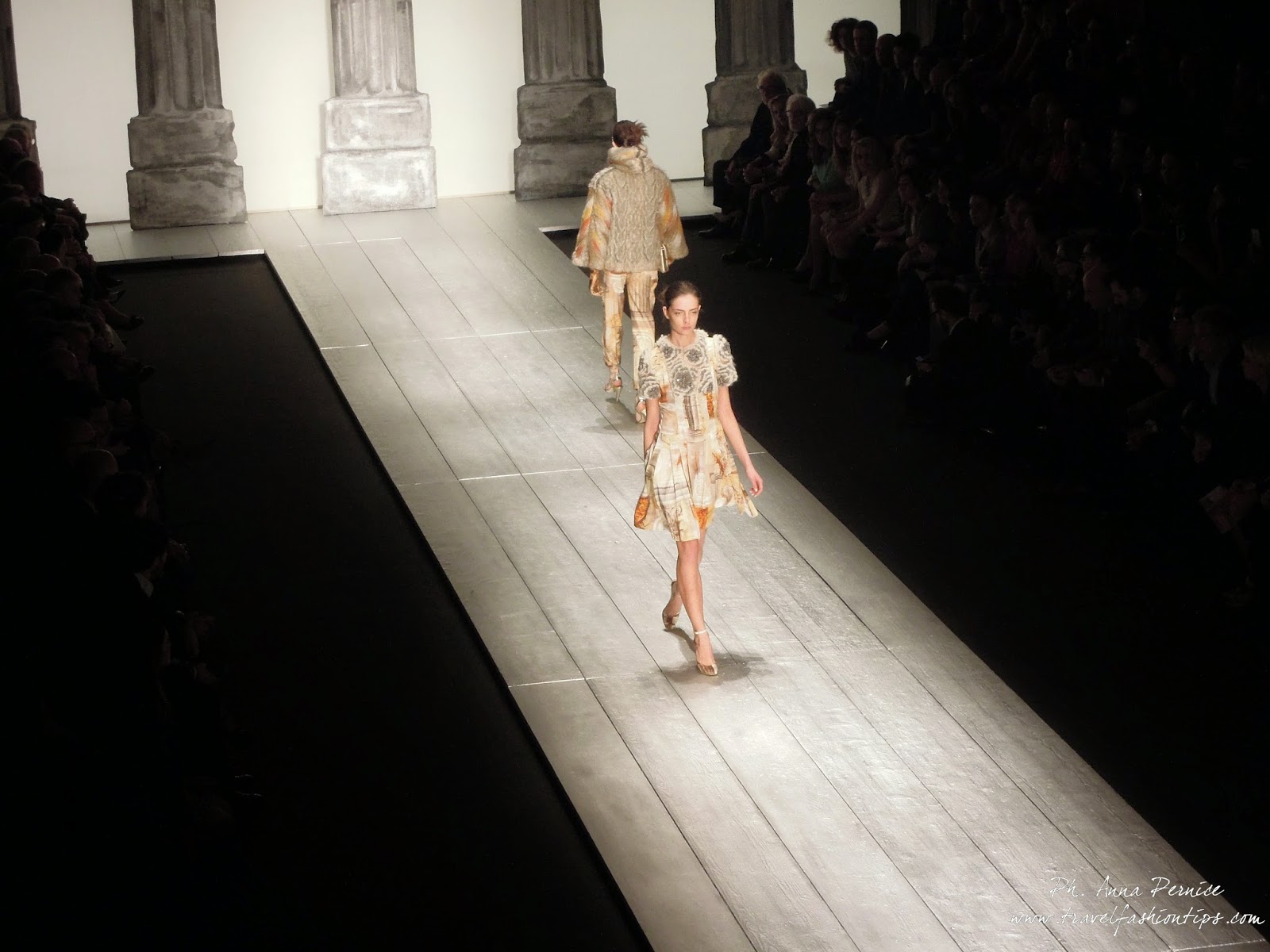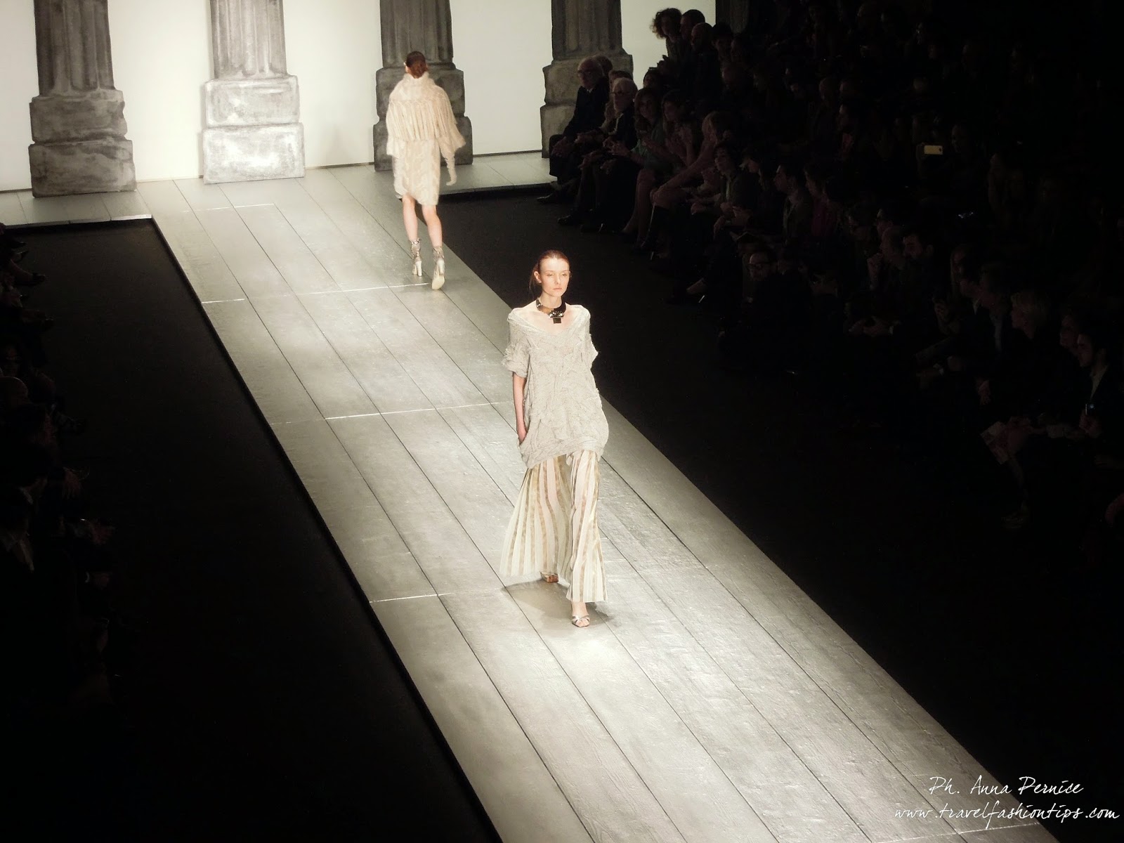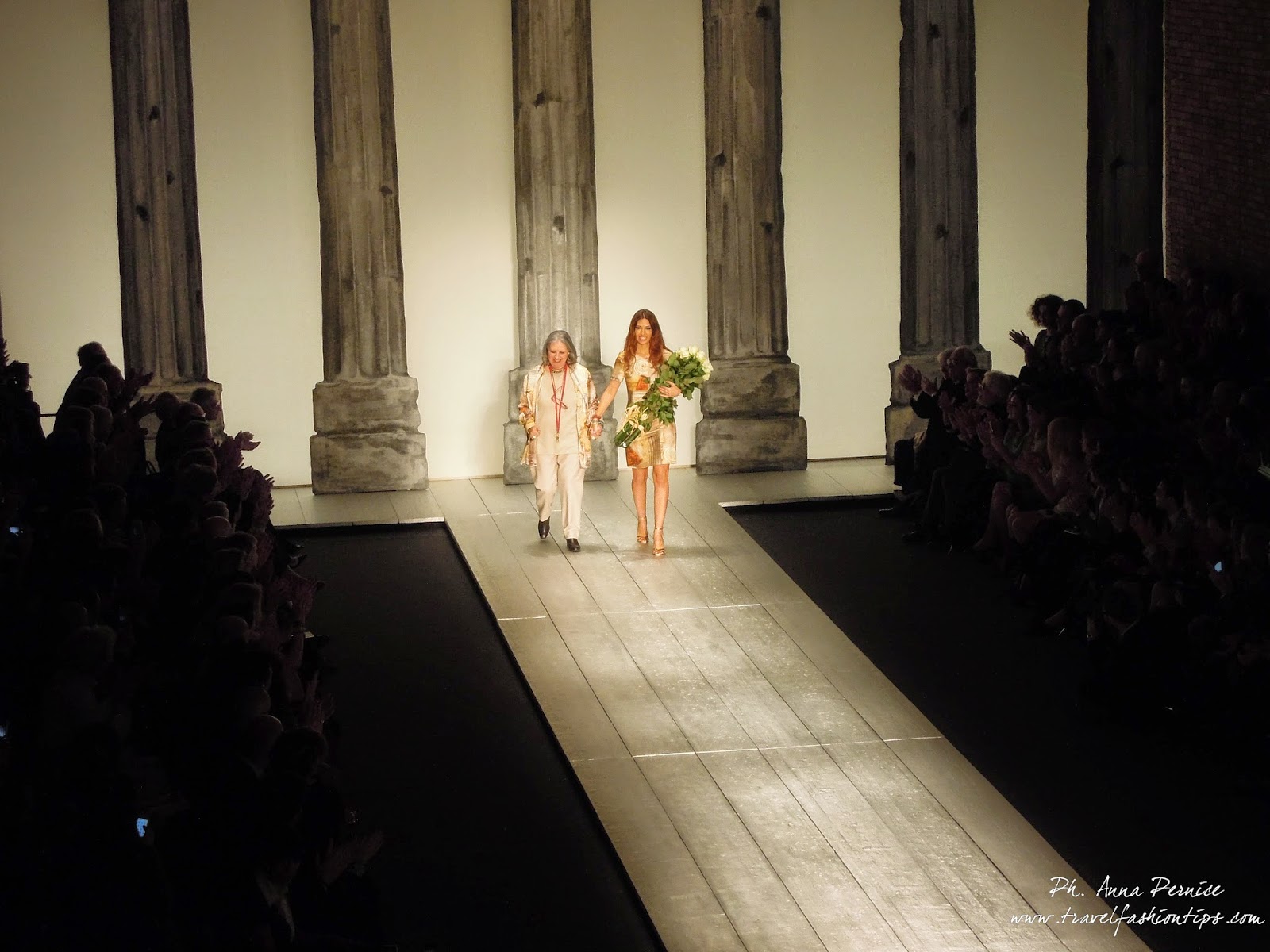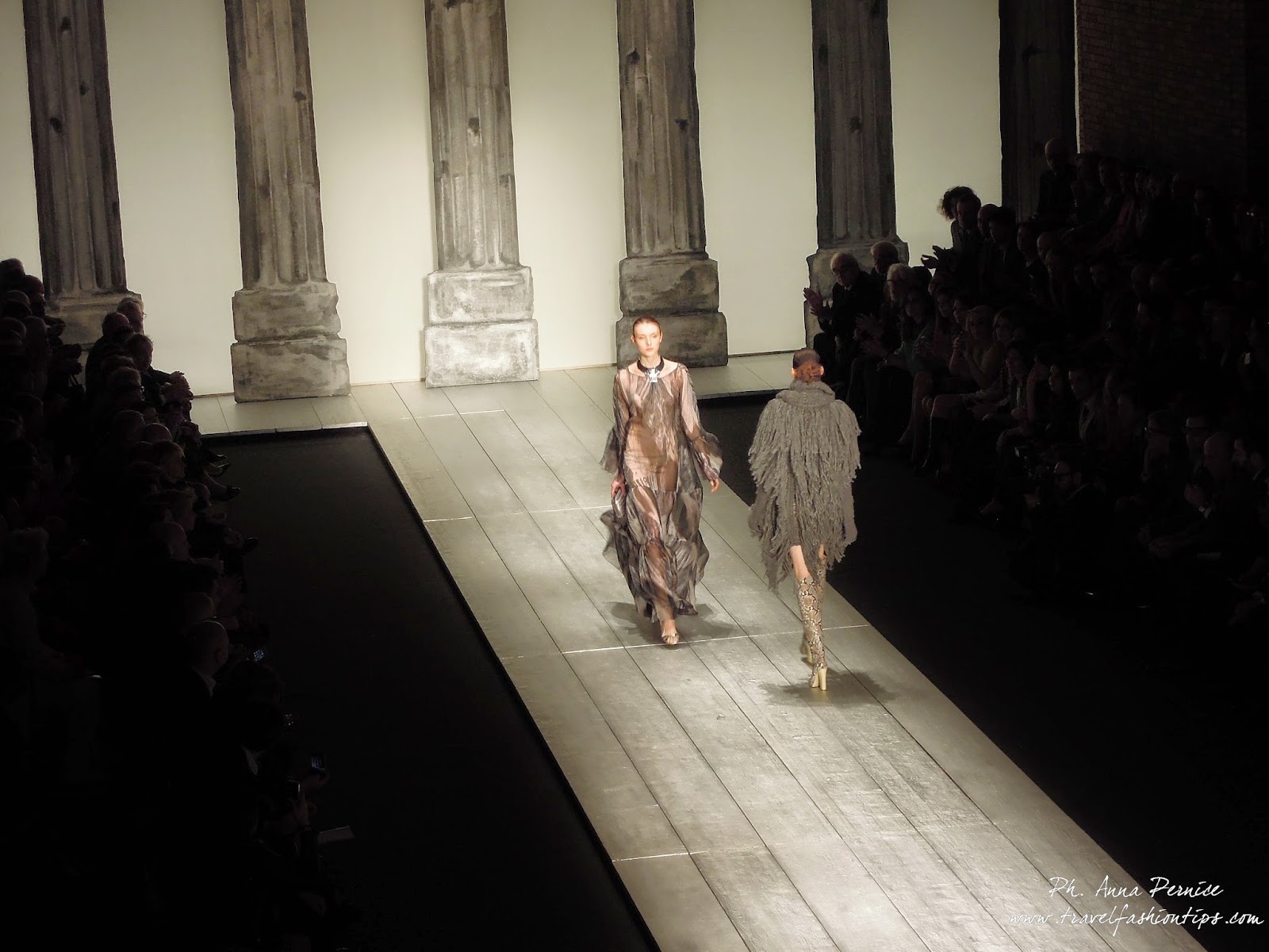 Nella cornice del Piccolo Teatro di Brera, allestito per l’occasione con una scenografia ispirata alle 11 delle 13 colonne del Tempio di Adriano di Roma in Piazza di Pietra, Laura Biagiotti ha presentato la sua collezione fall winter 2015, dedicata a Roma, città natale della stilista, da sempre presente nelle sue collezioni.