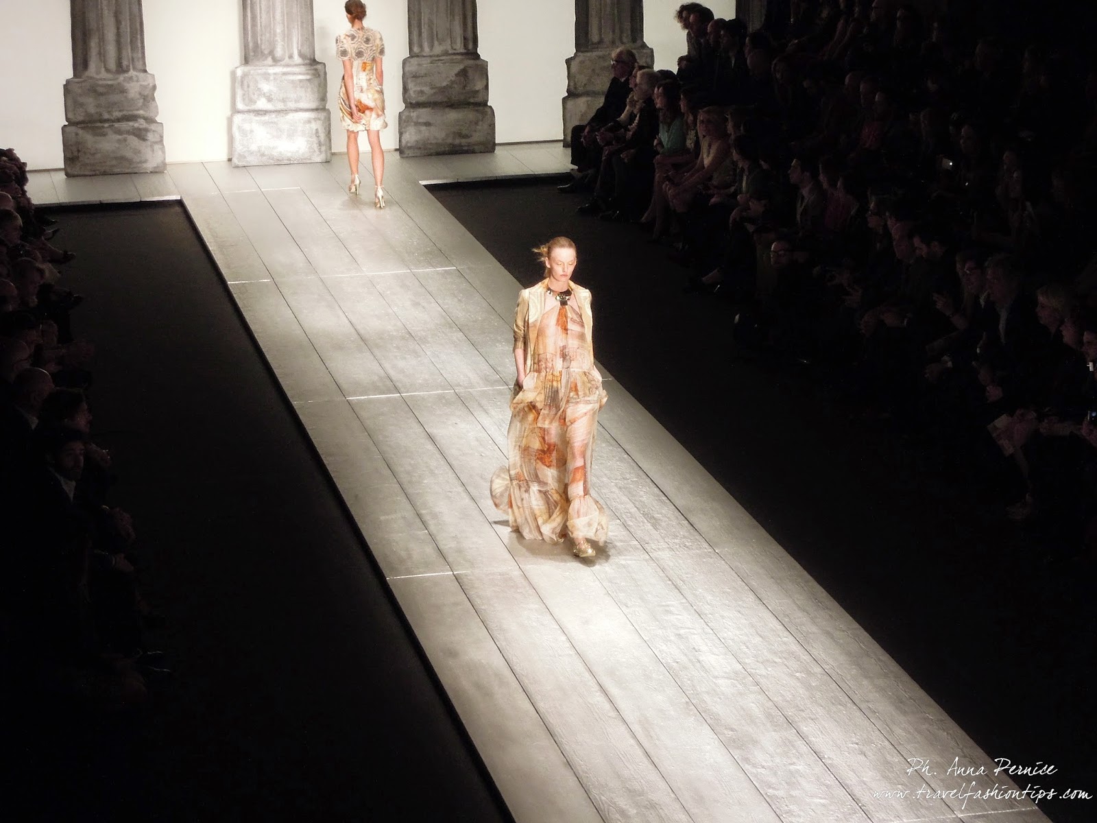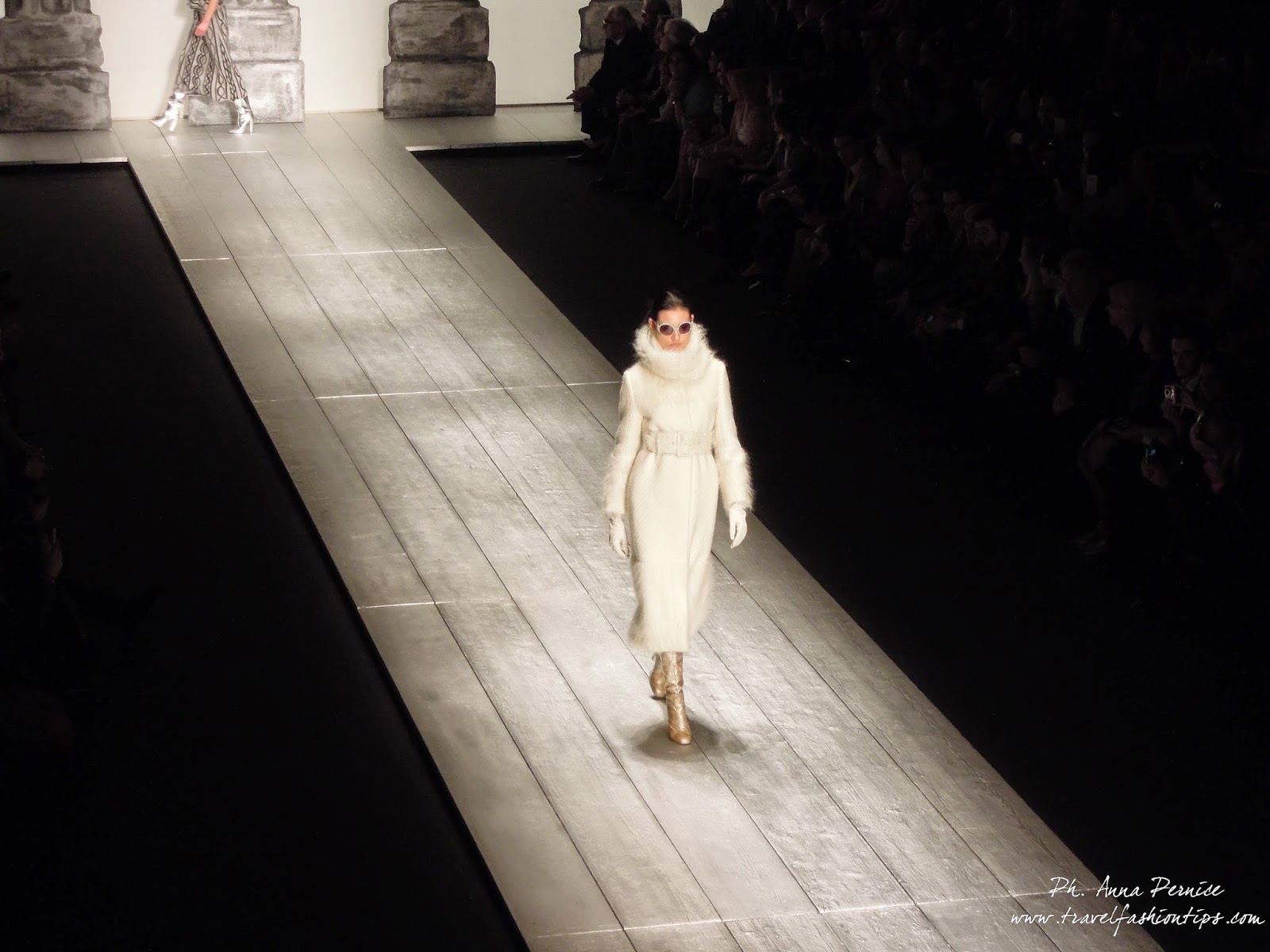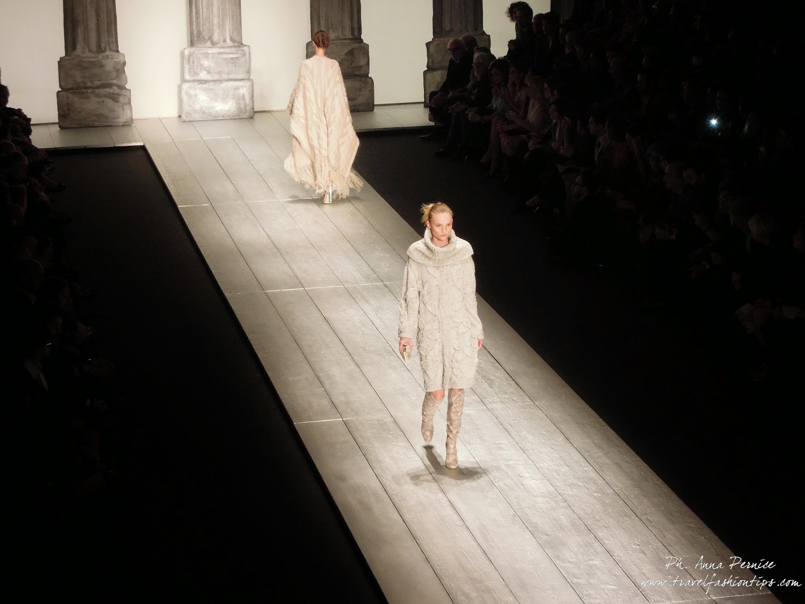 Nella cornice del Piccolo Teatro di Brera, allestito per l’occasione con una scenografia ispirata alle 11 delle 13 colonne del Tempio di Adriano di Roma in Piazza di Pietra, Laura Biagiotti ha presentato la sua collezione fall winter 2015, dedicata a Roma, città natale della stilista, da sempre presente nelle sue collezioni.