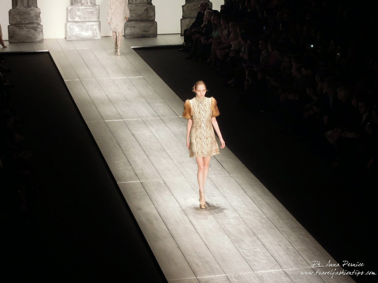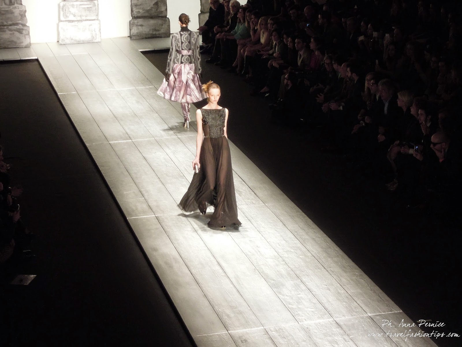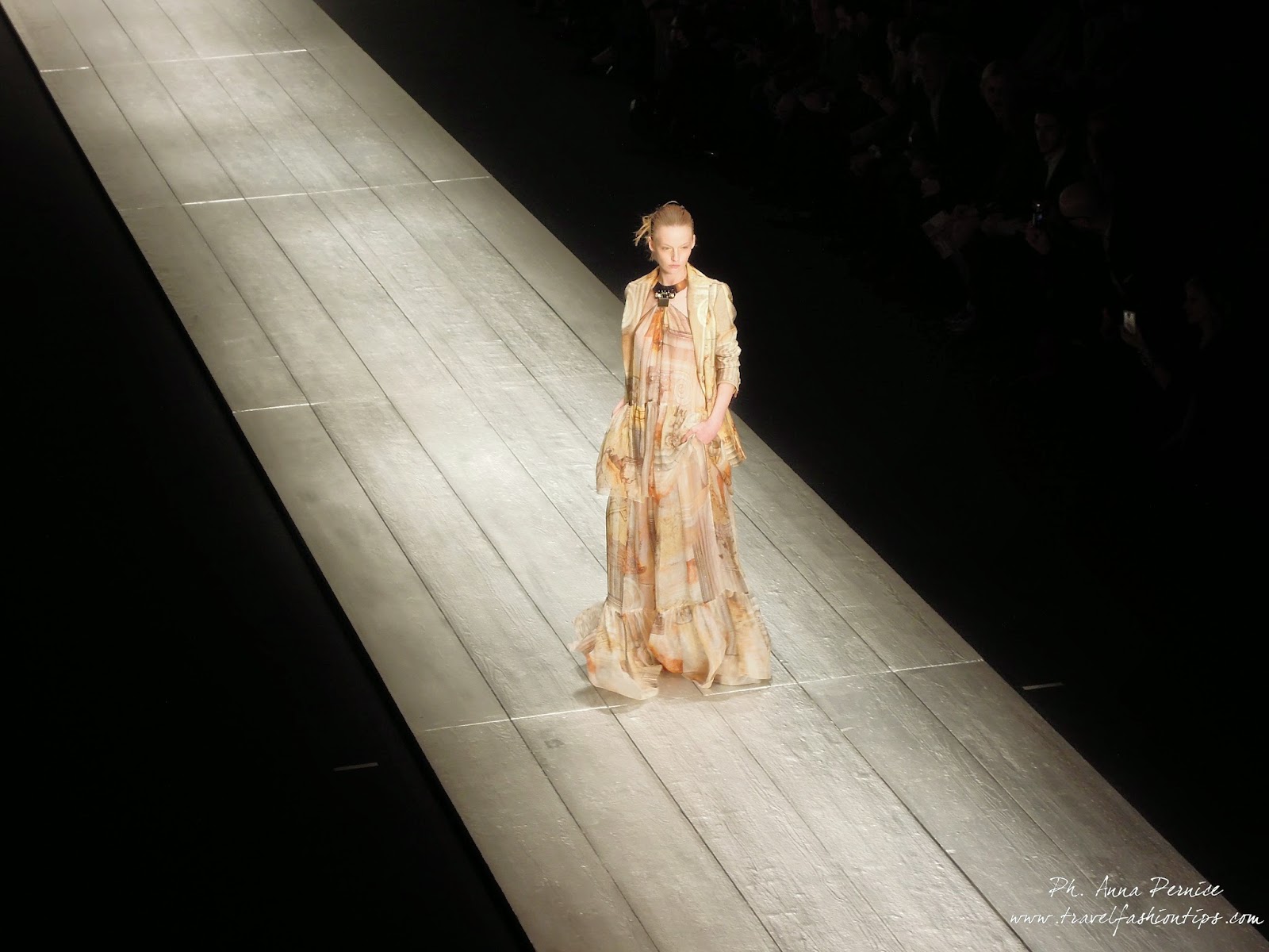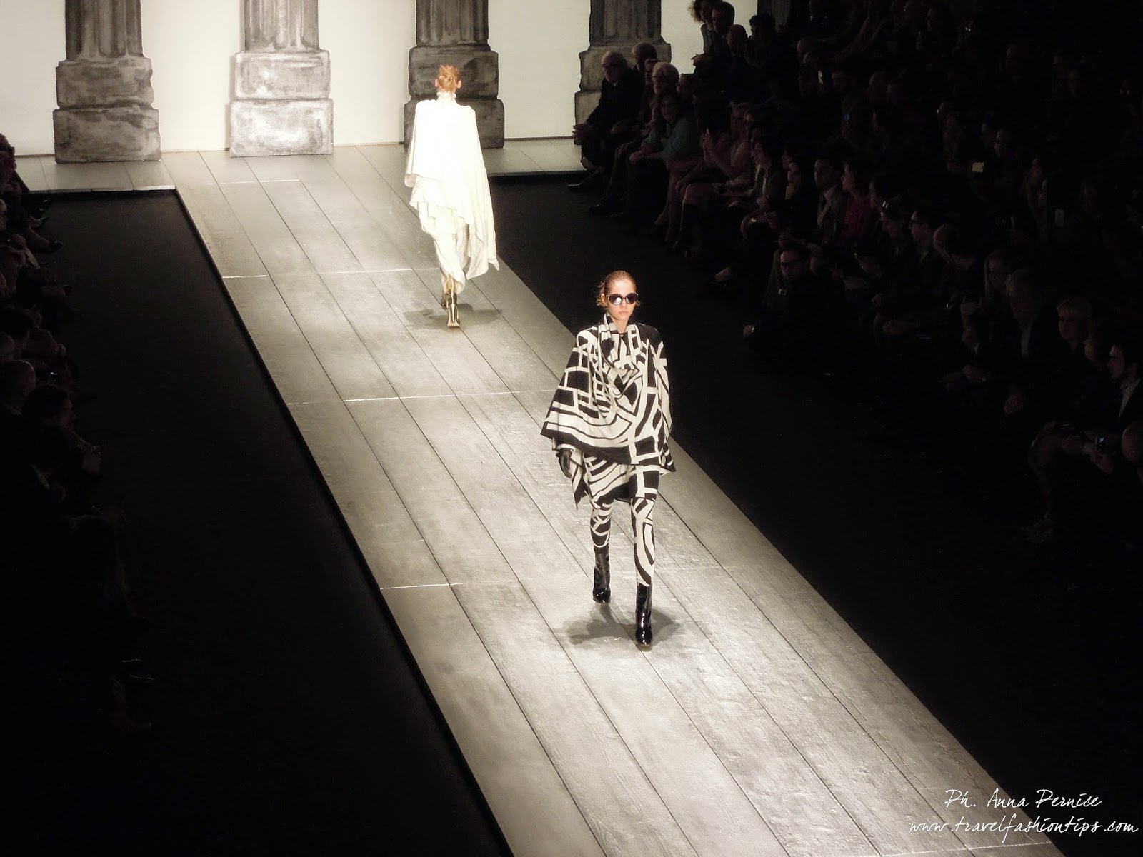 Nella cornice del Piccolo Teatro di Brera, allestito per l’occasione con una scenografia ispirata alle 11 delle 13 colonne del Tempio di Adriano di Roma in Piazza di Pietra, Laura Biagiotti ha presentato la sua collezione fall winter 2015, dedicata a Roma, città natale della stilista, da sempre presente nelle sue collezioni.
