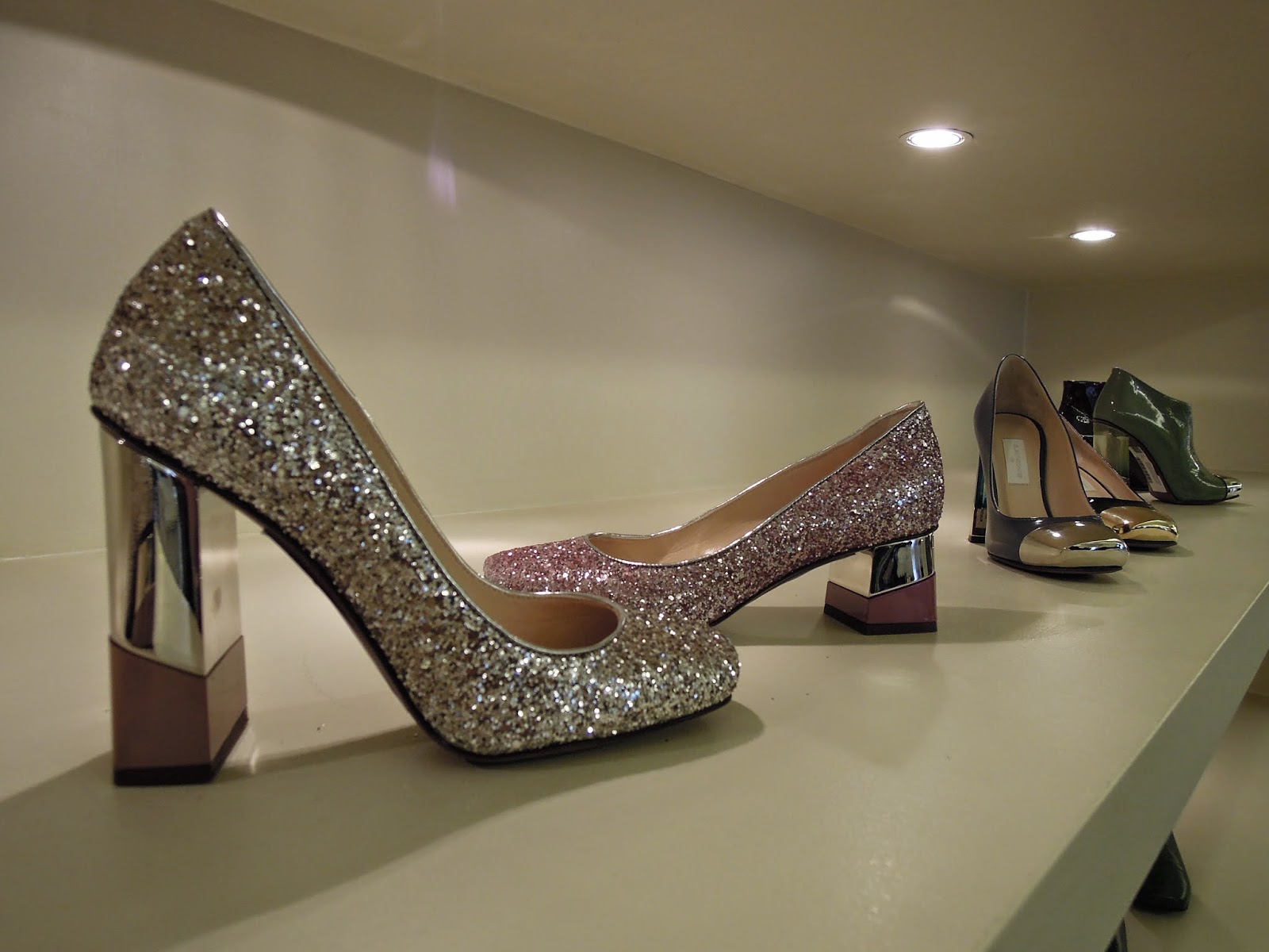 Per la collezione OR viene introdotta la linea quadrata su modelli monocolore, dal puntale metallico a contrasto o interamente coperto di glitter.