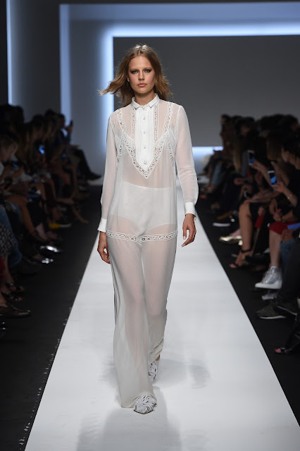 La collezione Primavera Estate 2016 di Ermanno Scervino trae ispirazione dal guardaroba maschile, usando però materiali preziosi quali il pizzo, la seta, lo chiffon per una donna che ama essere perfetta anche in ufficio.