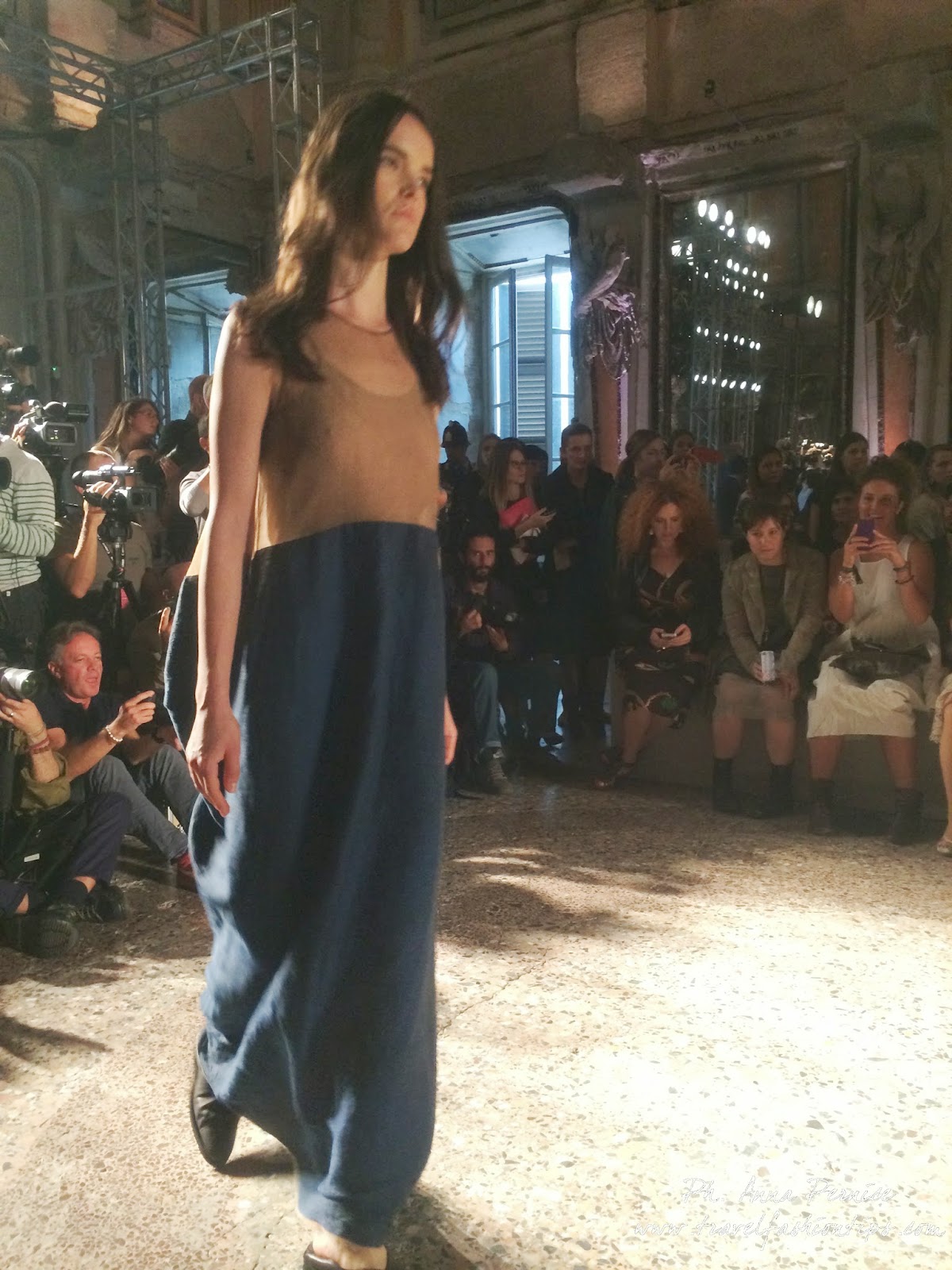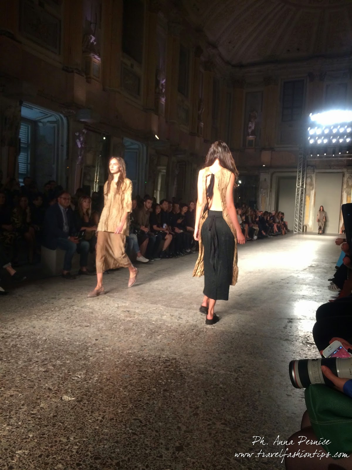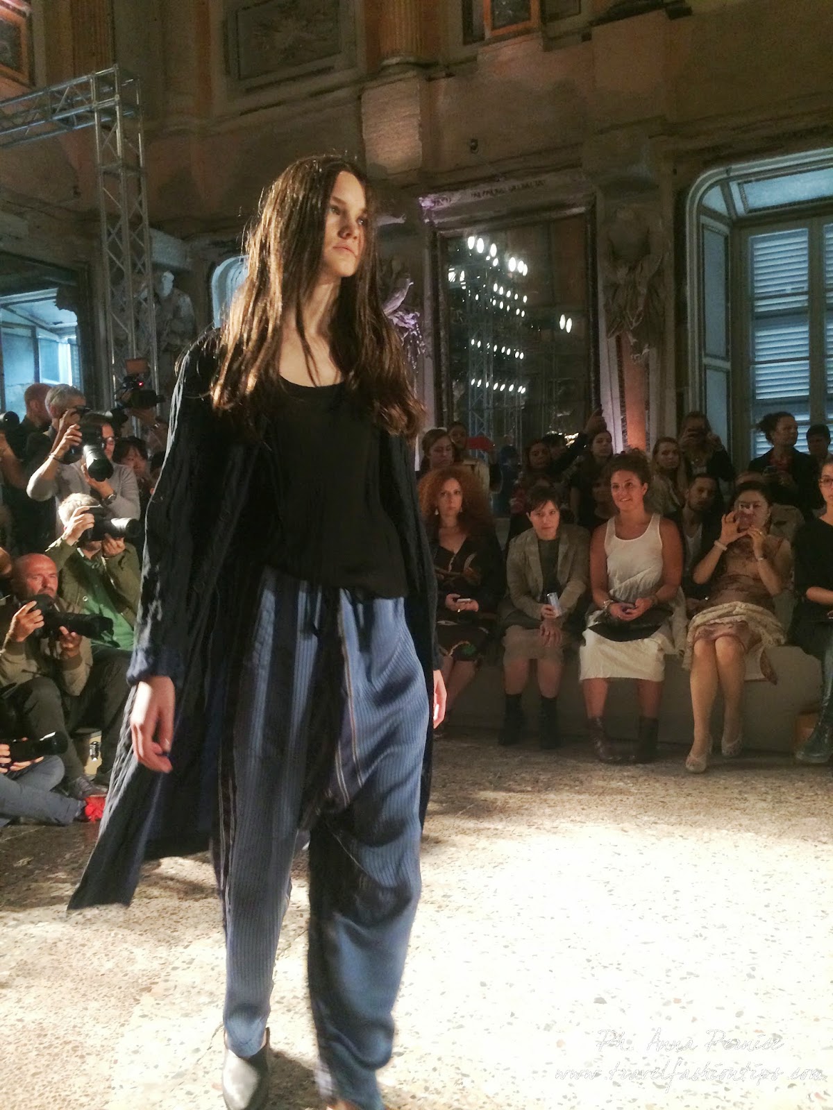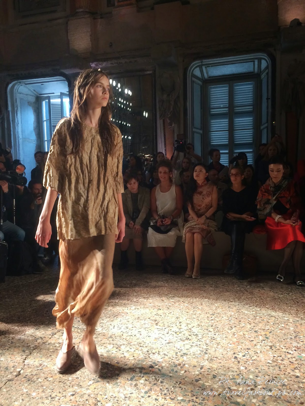Quanto all’ispirazione, l’Oriente non manca, col suo bagaglio di emozioni, ricordi e sensazioni. ma la collezione sa ammiccare decisa anche a occidente, e un vintage occidentale. Forse anche, almeno in parte, per l’amore che Uma Wang porta in particolar modo proprio a Milano e all’Italia. Dove avviene più di metà della lavorazione dei suoi capi, e dove, racconta, è sempre contenta di andare in scena.