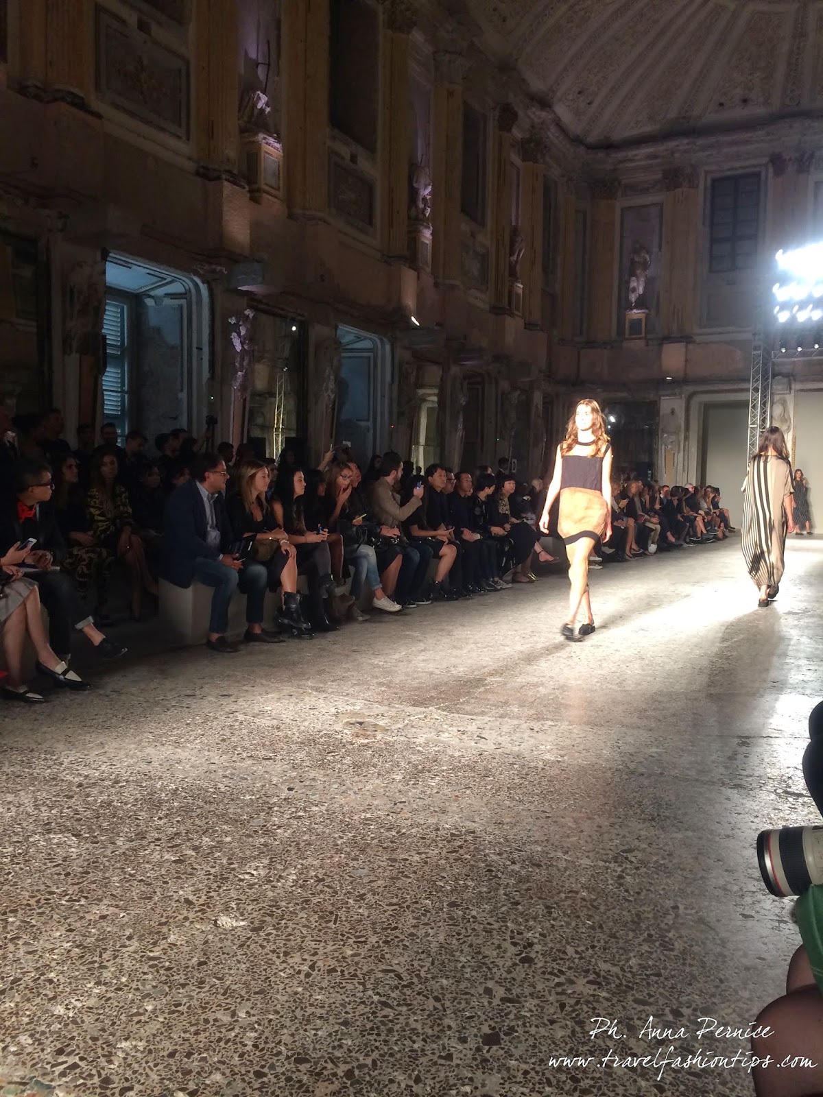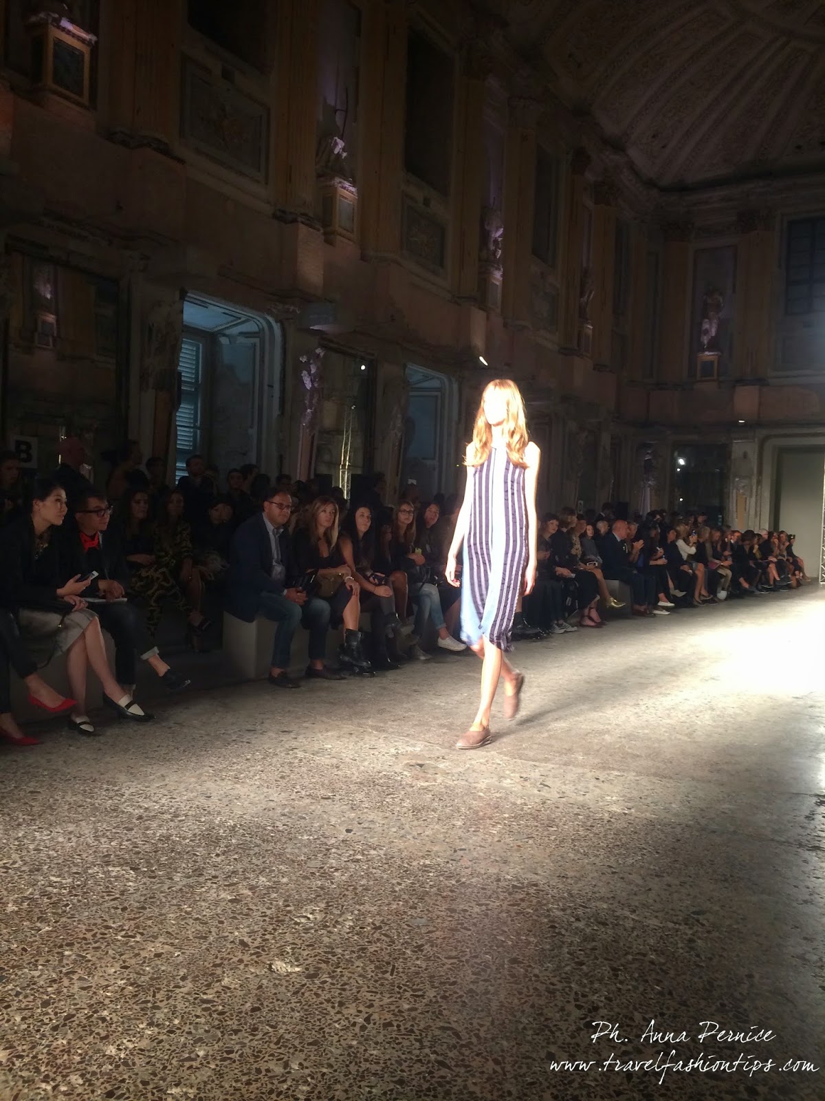 Ma in questa ss 2015 le stampe ed i tessuti sono un campo di sperimentazione. Emergono, infatti, i motivi floreali e le righe, capaci quasi di dettare da sé i centimetri e la consistenza delle stole che dolci scendono sul corpo, o di stupire come nell’abbinamento blazer-pantaloni (insolitamente) skinny.