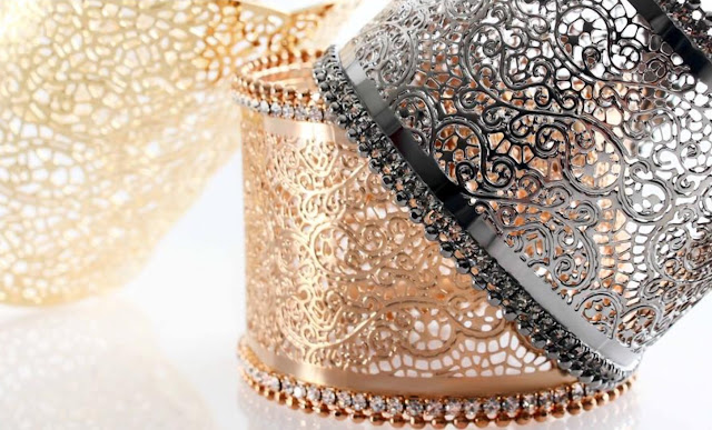 Disegni più complessi, vistosi e accattivanti caratterizzano la linea Seduction: bracciali schiava, orecchini e collane merletto.