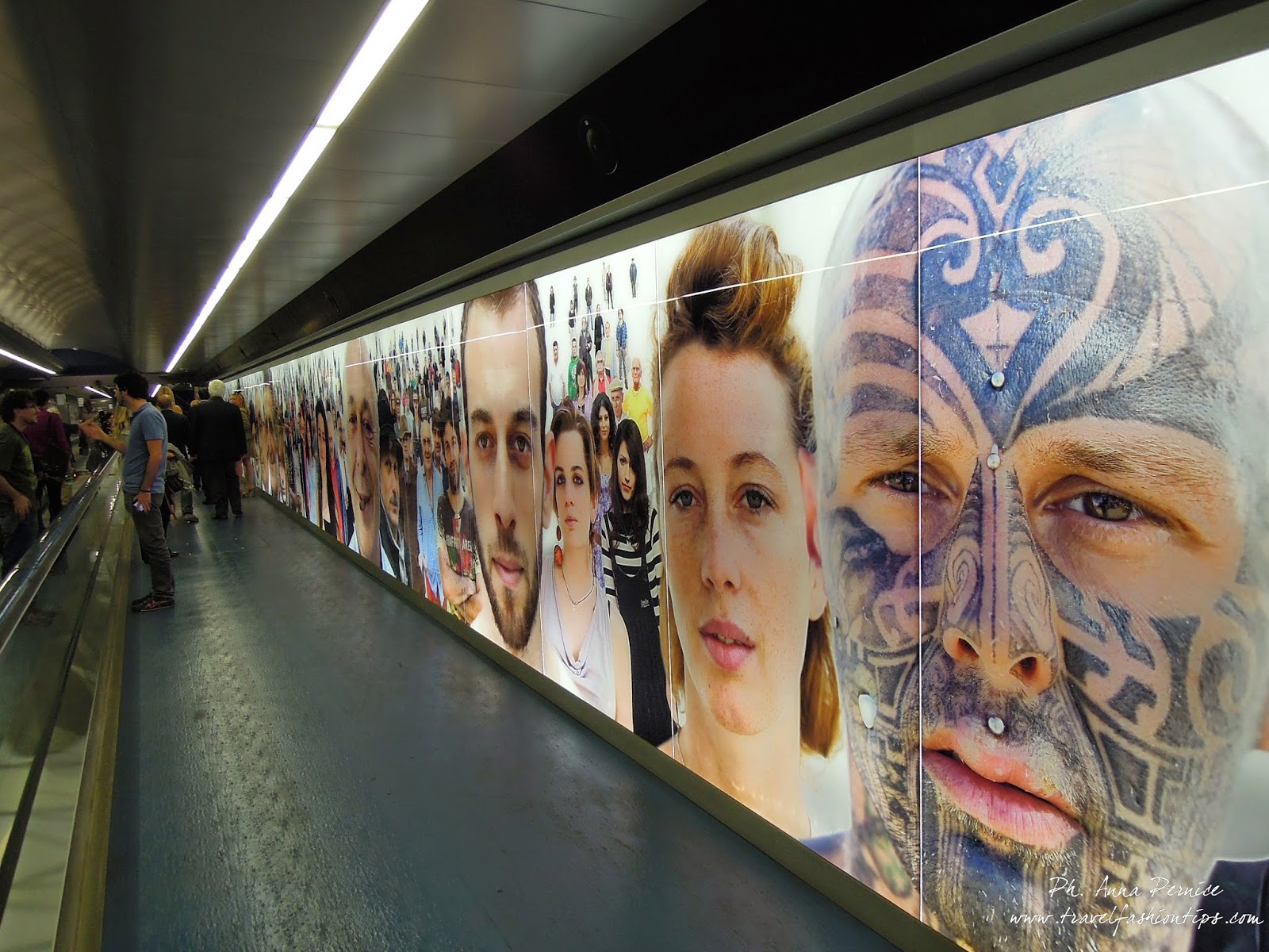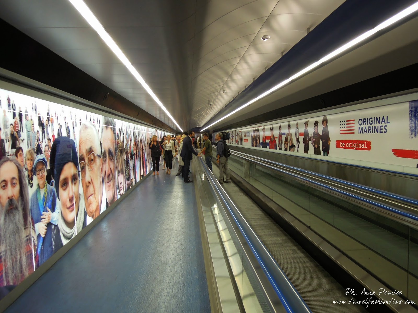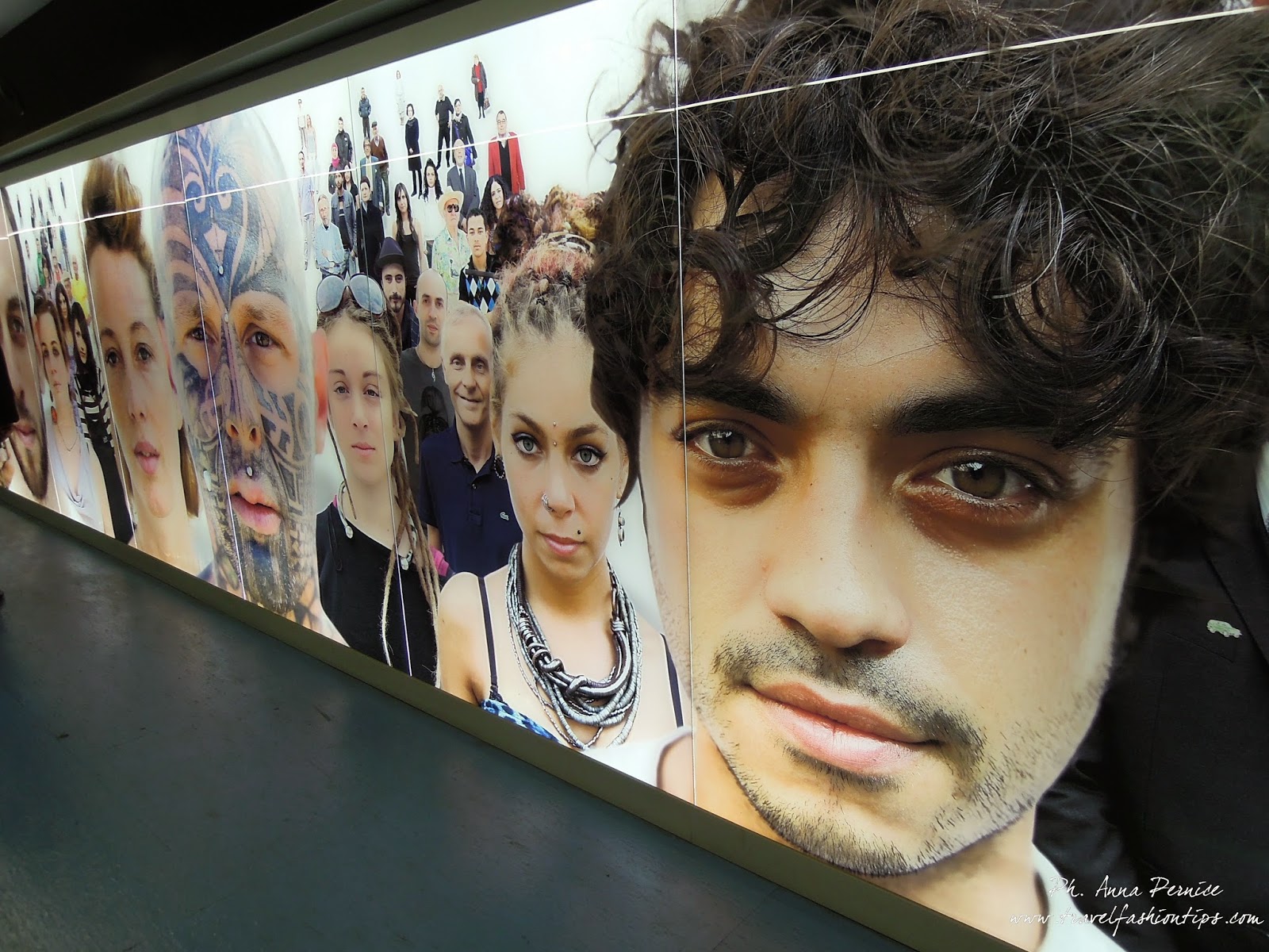 La scelta della location non è stata casuale, perchè la campagna pubblicitaria di Original Marines riprende proprio quella dell’opera “Razza Umana” (il collage di volti che accompagna il viaggiatore nel suo cammino all’interno della Stazione Toledo della metropolitana di Napoli) lì in esposizione.
