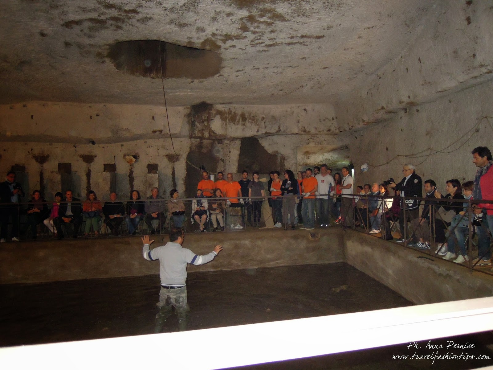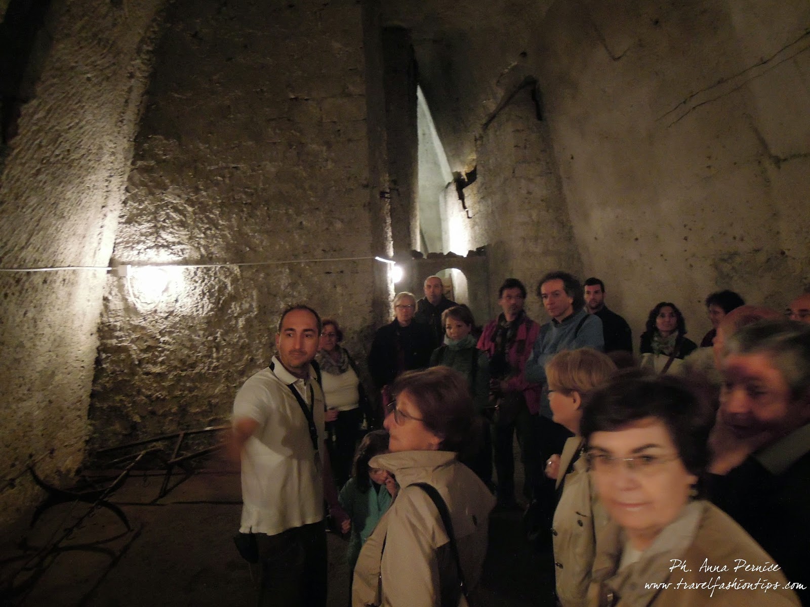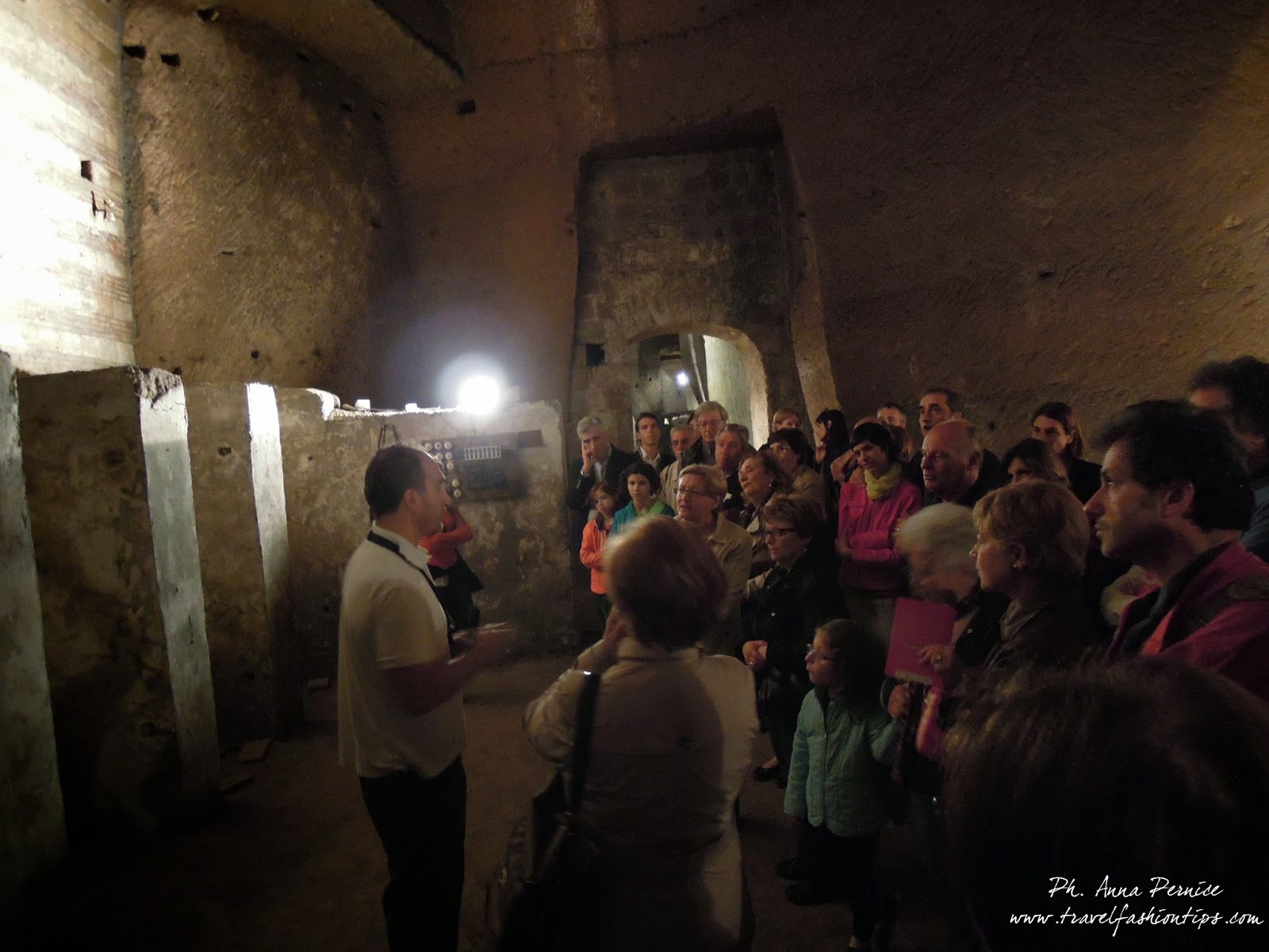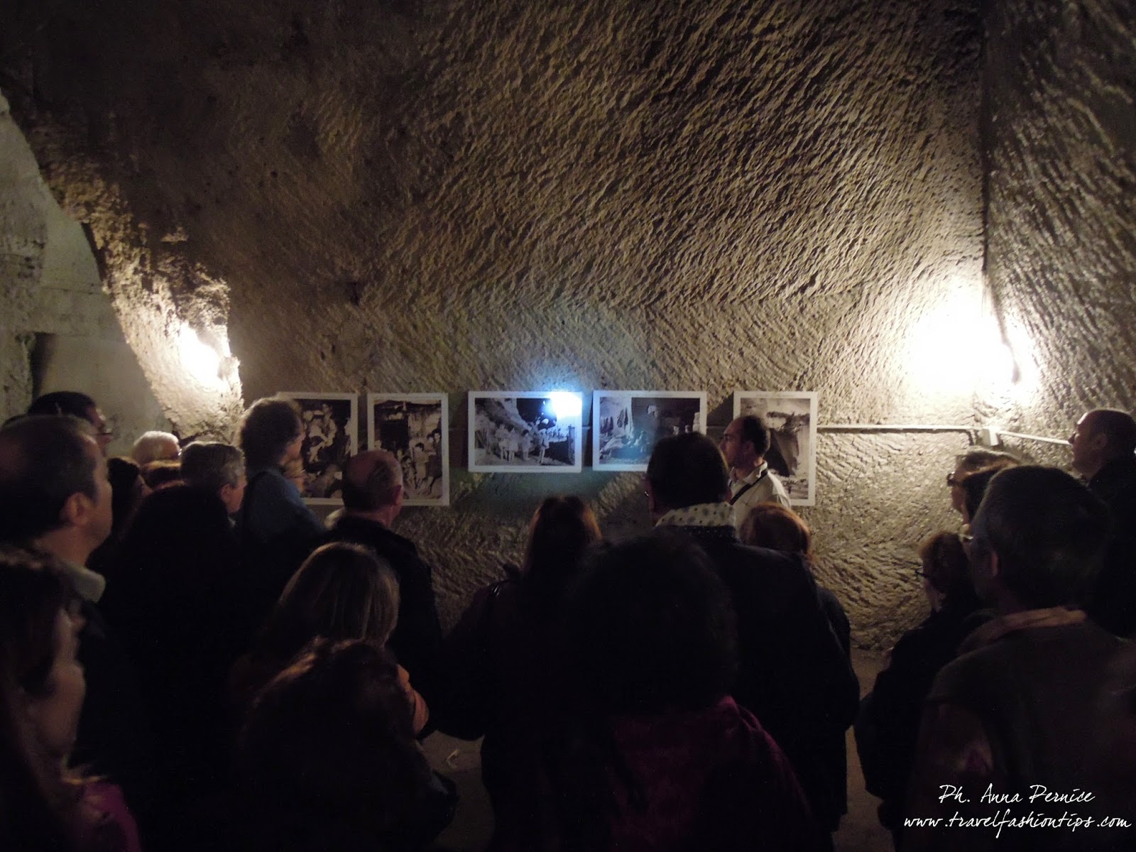 Marco, ci ha raccontato storie ed aneddoti legati ad alcuni di loro, rendendoceli così vivi come se fossero proprio loro, i protagonisti delle storie, li davanti a noi per farci rivivere gli anni della seconda guerra mondiale. E così ho scoperto che nell’ultima cisterna in fondo al tunnel vivevano più di cinquemila famiglie addossate le une alle altre in solo mezzo metro di spazio in cui facevano “tutto”, che c’era un unico cagnolino li nella cisterna usato come scusa per far scendere i bambini, che le carrozzine ritrovate nelle cavità sotterranee, erano l’unico giocattolo a disposizione dei bambini.