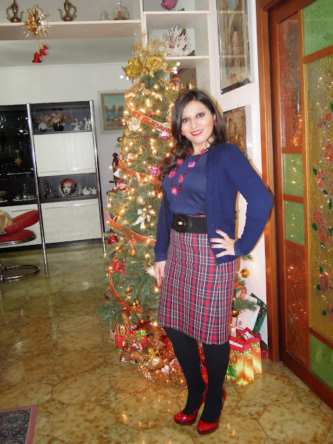 Oggi nuovo post outfit. Dopo avervi parlato in un precedente post della tendenza del tartan durante quest’inverno, ed avervi proposto un solo outfit tartan con il trench beige e khaki acquistato sul sito Anatomie, questa volta vi presento la mia personale interpretazione del tartan proponendovi un outfit rosso e blu con la gonna scozzese a sigaretta acquistata sul sito FrontRow abbinandola con un giacchino di lana che mi fece mia nonna paterna tanti anni fa e che non avevo più indossato.