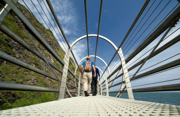 Il Gobbins Cliff Path, nella contea di Antrim, in Irlanda, è un emozionante percorso di circa 3 chilometri che presenta ponti sospesi, ponti tubolari, uno scalone, grotte e gallerie, scavate nella roccia.