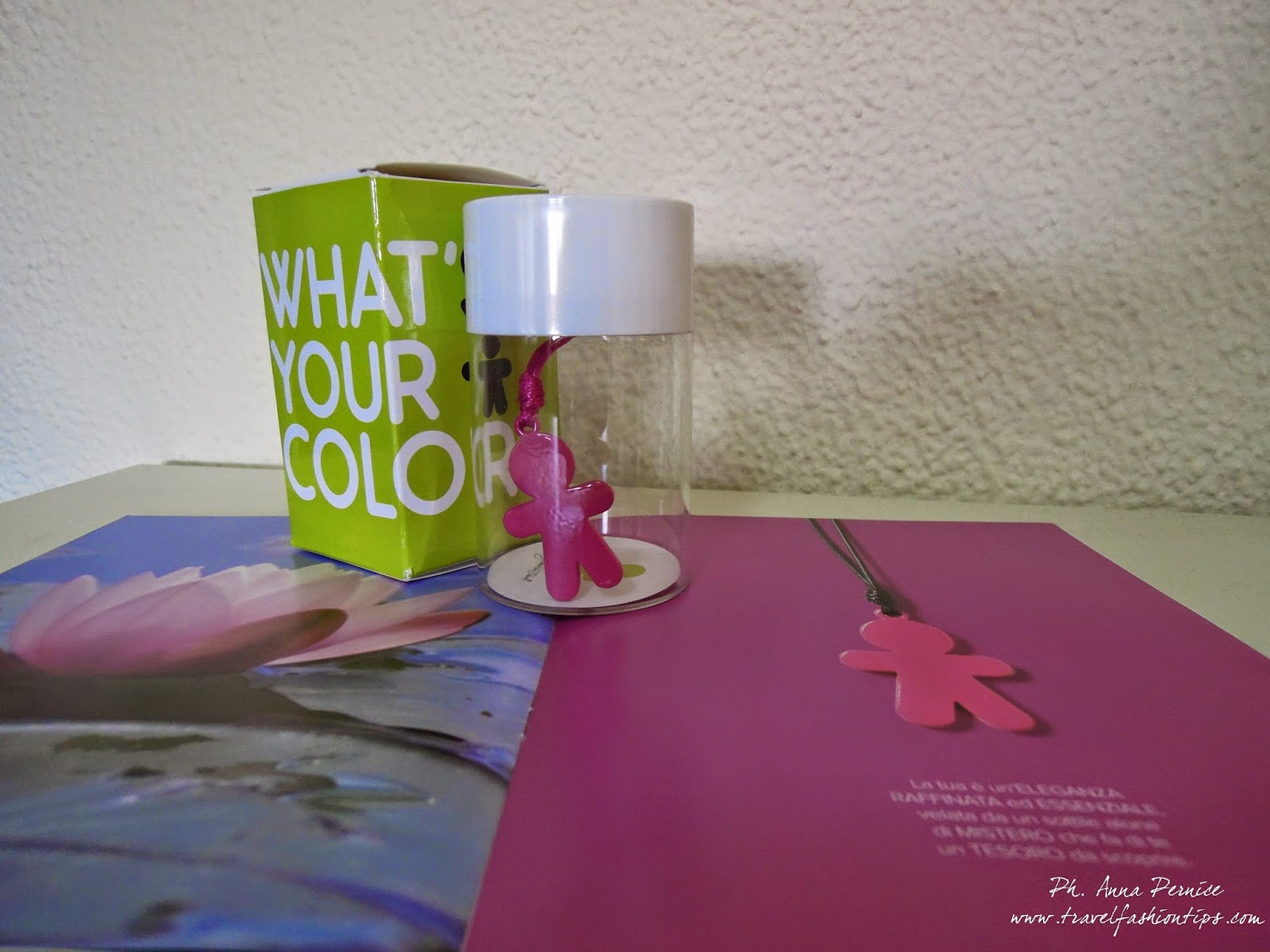 Io, ovviamente, ho scelto il fucsia, il colore delle fashioniste, che rappresenta un’eleganza raffinata ed essenziale, velata da un sottile alone di mistero. Ma é disponibile anche in nero, verde, blu, ecc. Ognuno con un significato diverso!