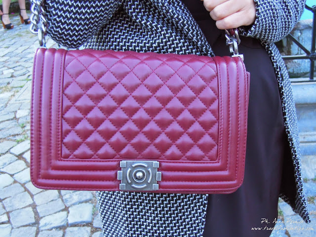 Ho impreziosito il tutto con una borsa in vera pelle modello Chanel presa su Baginic e le scarpe di vernice rossa Cafè Noir.