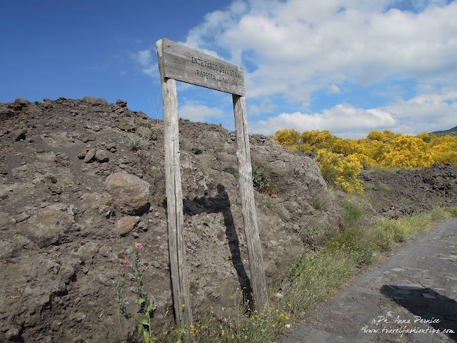 Ed è proprio dalla Strada dei grandi viaggiatori (Goethe, Irwing, Birsmarck e vari principi e principini) che è partita la mia escursione. In un percorso circondato da ginestre, ho assistito prima alle Cave Laviche di Nicolosi, dalle quali viene estratto il basalto per le lavorazioni di pietra lavica. Nel catanese tutte le case sono state costruite con la pietra lavica che è indistruttibile.