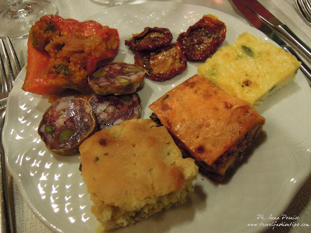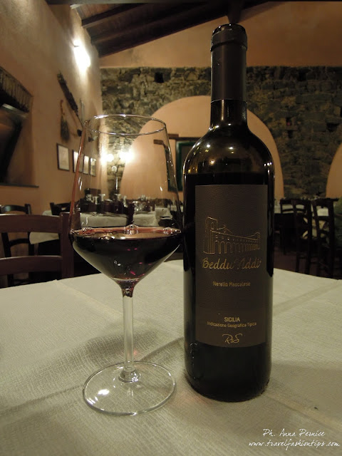Dopo una grande vastità di antipasti titpici locali, tra cui la buonissima caponata di melanzane, abbinate al buonissimo vino Nerello Mascalese BedduViddi, lo chef Fabio Leocata ci ha fatto degustare due primi piatti davvero eccezionali: