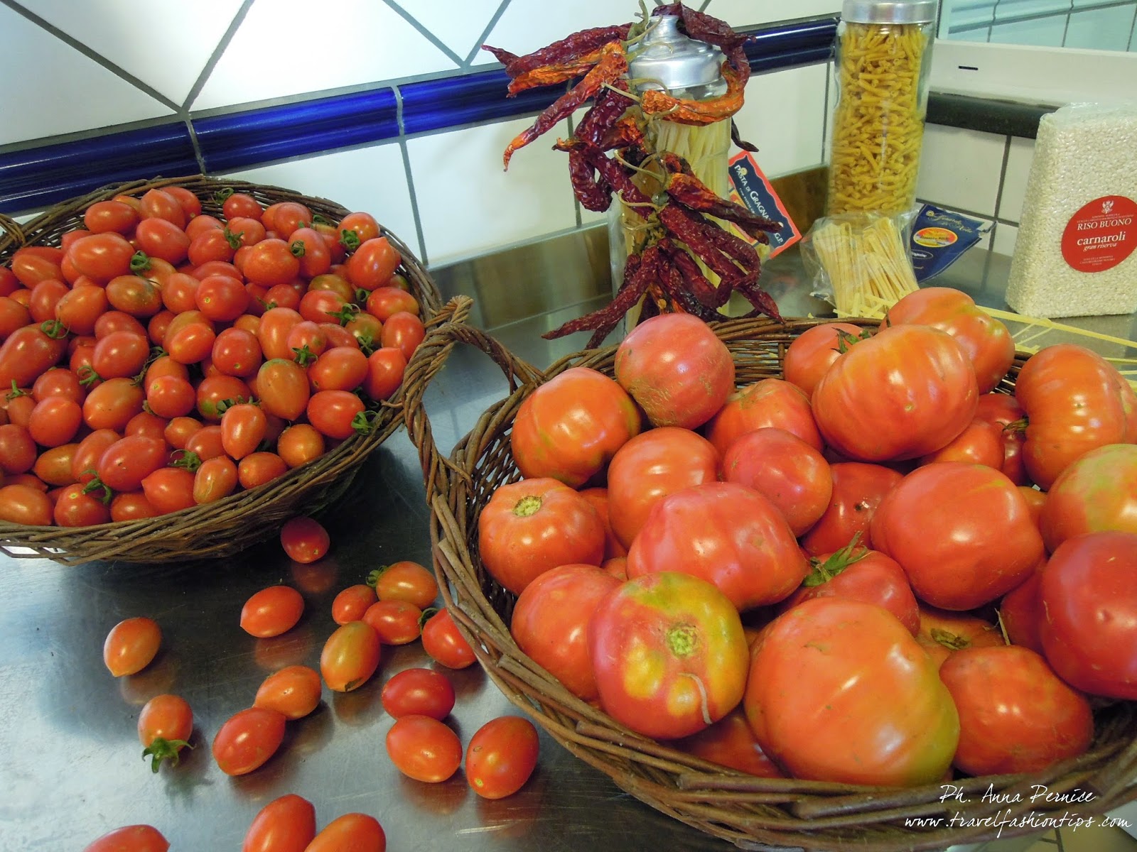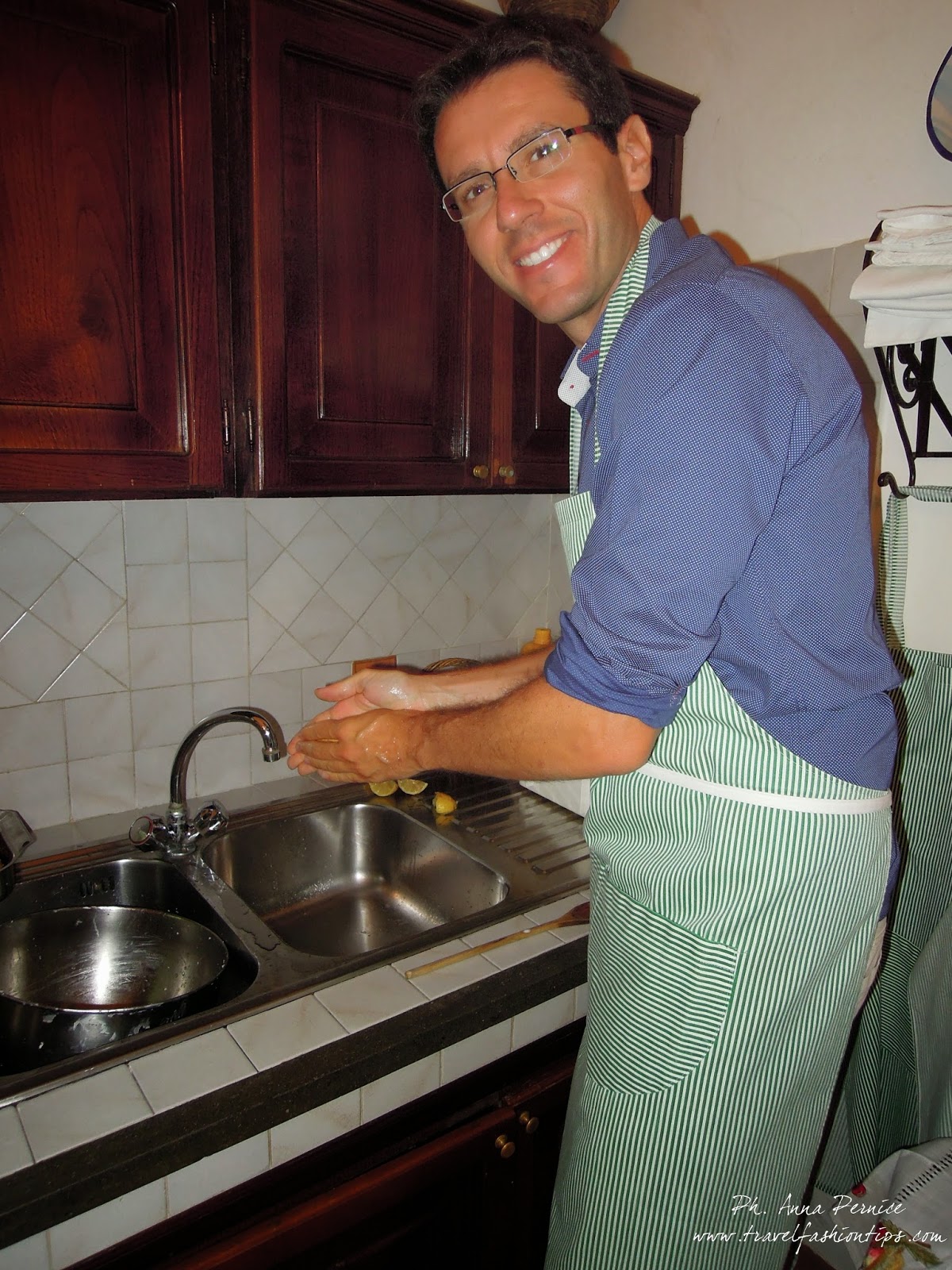 L’aperitivo si è tenuto in una location unica, in pratica la cucina in cui insegnano agli appassionati italiani e stranieri i segreti della cucina nostrana, lungo tavolo in granito, punti di cottura, camino e tutto quello che non può mancare in una tavola nella costiera amalfitana: pomodori, limoni, carote rigorosamente dell’orto, nonché una selezioni di vini autoctoni.