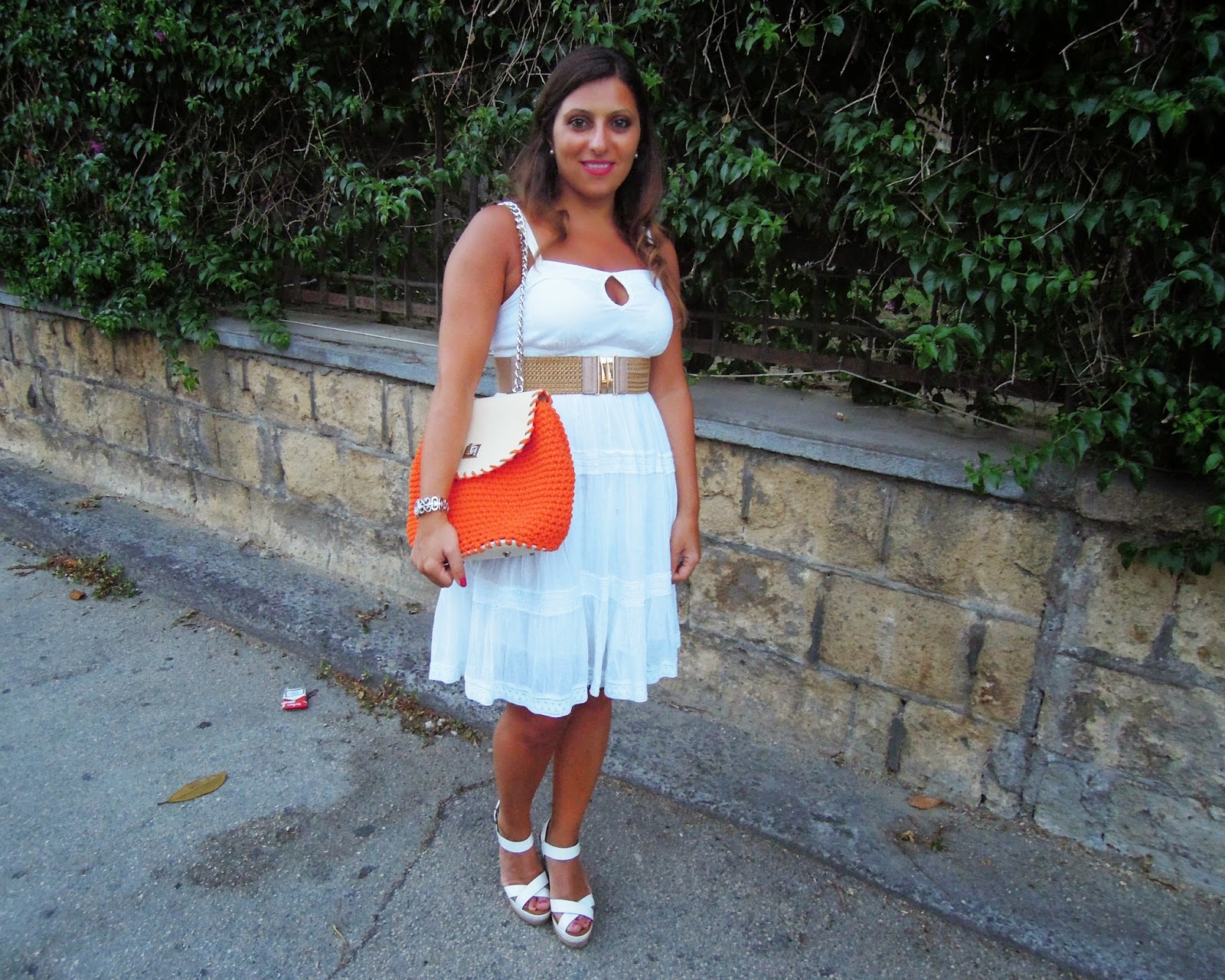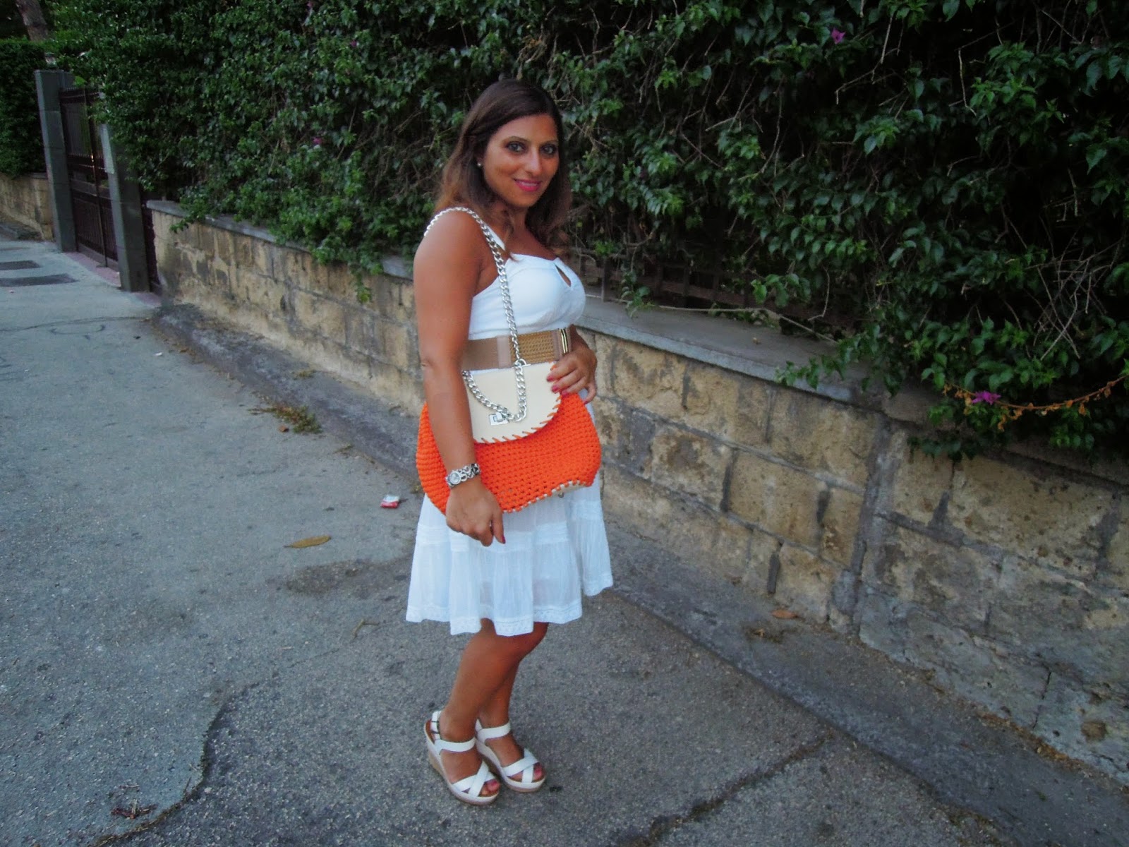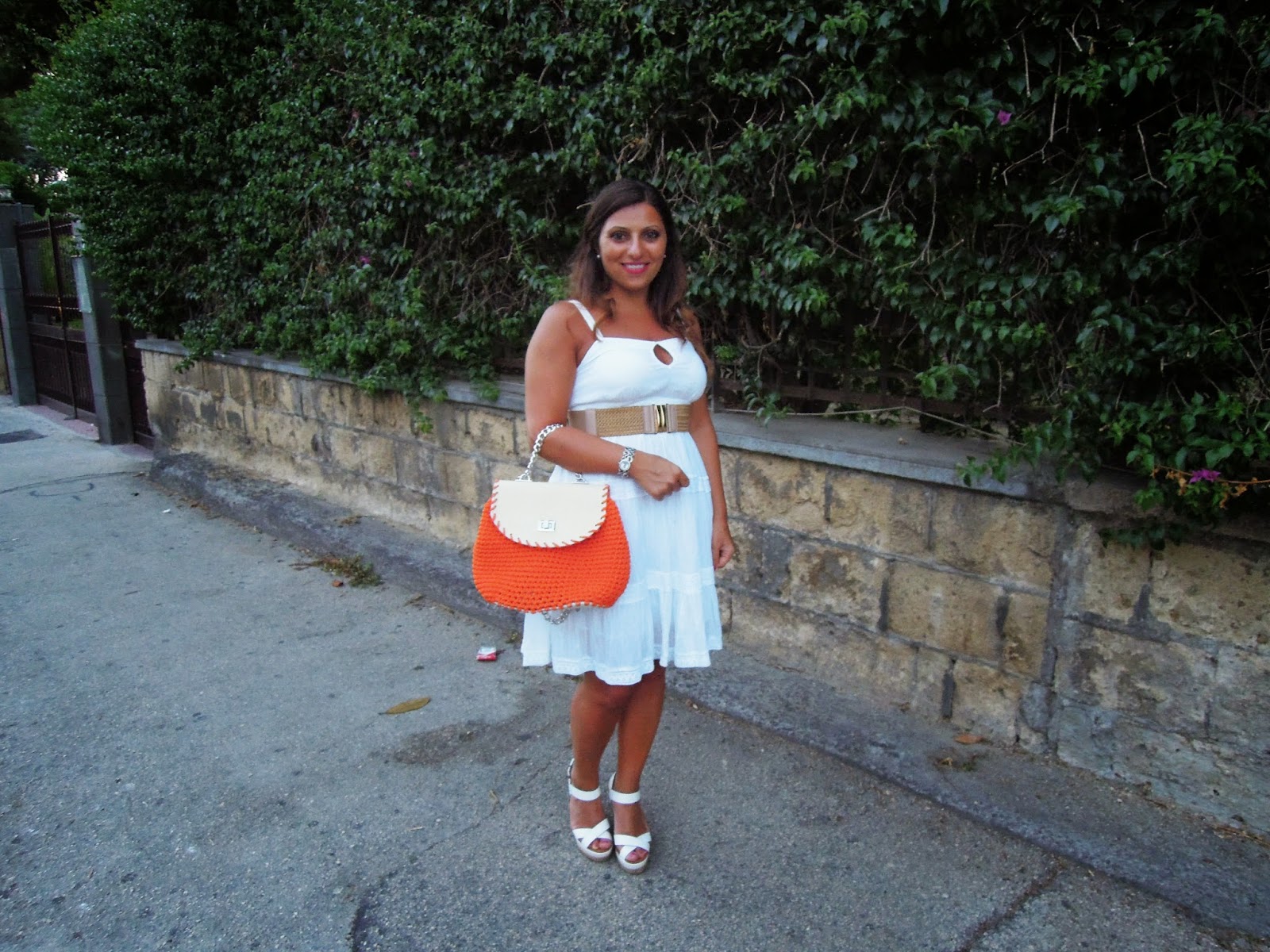 Il bianco, del resto è il colore dell’estate e si abbina perfettamente con tutto! Io ho deciso di abbinarlo ad una bag di raffia intrecciata arancio realizzata da Giolì Jolies, un giovane brand campano disegnato dall’estro creativo e dalla bravura di Lina Esposito e Gigliola Cesario e di cui vi avevo già parlato in occasione del loro trunk show durante il Wine and The City a Napoli.